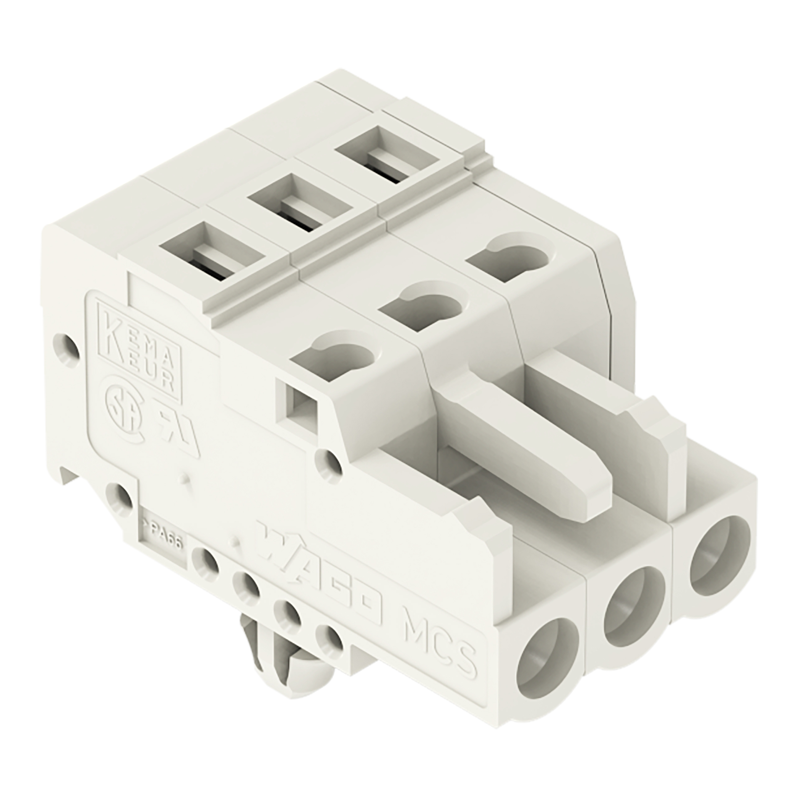gniazdo 1-przewodowe; CAGE CLAMP®; 2,5 mm²; raster 5 mm; 3-bieg.; 100% ochrona przed błędnym połączeniem; stopki zatrzaskowe; 2,50 mm²; jasnoszary
