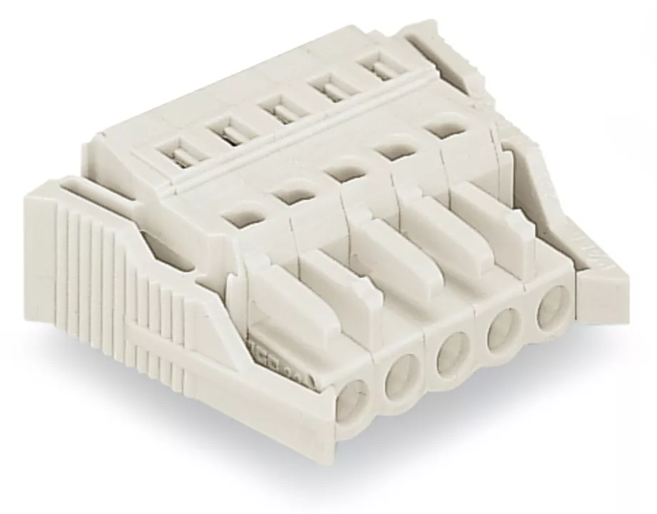 gniazdo 1-przewodowe; CAGE CLAMP®; 2,5 mm²; raster 5 mm; 5-bieg.; 100% ochrona przed błędnym połączeniem; boczne zaczepy ryglujące; 2,50 mm²; jasnoszary