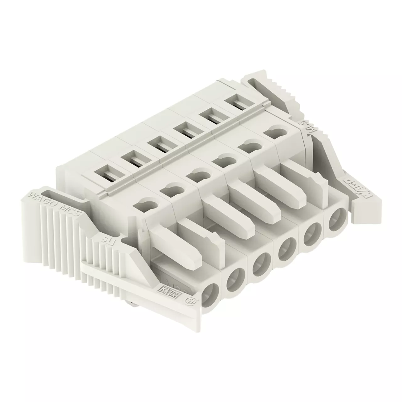 gniazdo 1-przewodowe; CAGE CLAMP®; 2,5 mm²; raster 5 mm; 6-bieg.; 100% ochrona przed błędnym połączeniem; boczne zaczepy ryglujące; stopki zatrzaskowe; 2,50 mm²; jasnoszary