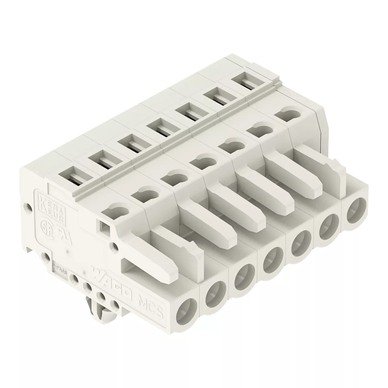 gniazdo 1-przewodowe; CAGE CLAMP®; 2,5 mm²; raster 5 mm; 7-bieg.; 100% ochrona przed błędnym połączeniem; stopki zatrzaskowe; 2,50 mm²; jasnoszary