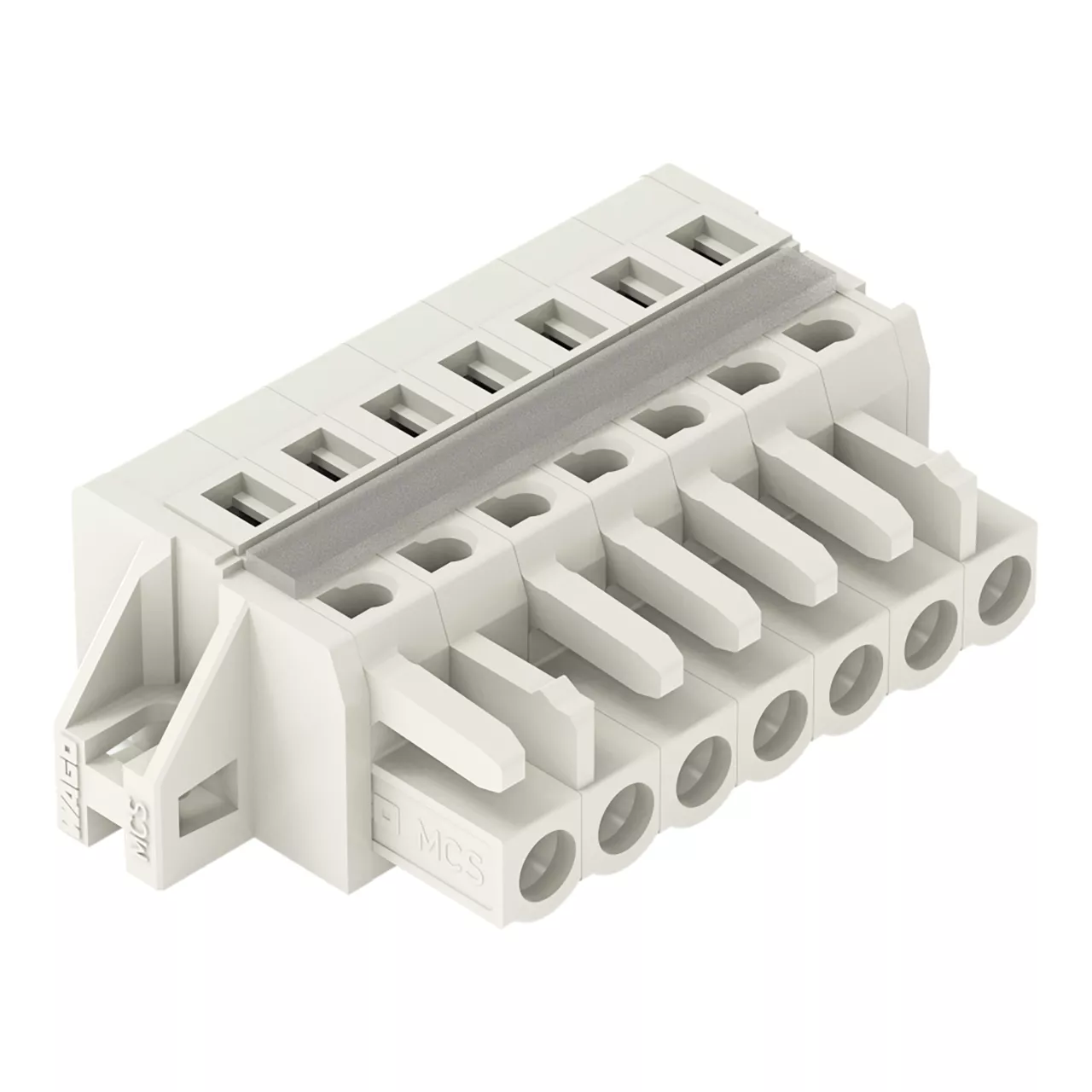 gniazdo 1-przewodowe; CAGE CLAMP®; 2,5 mm²; raster 5 mm; 7-bieg.; 100% ochrona przed błędnym połączeniem; kołnierz mocujący; 2,50 mm²; jasnoszary