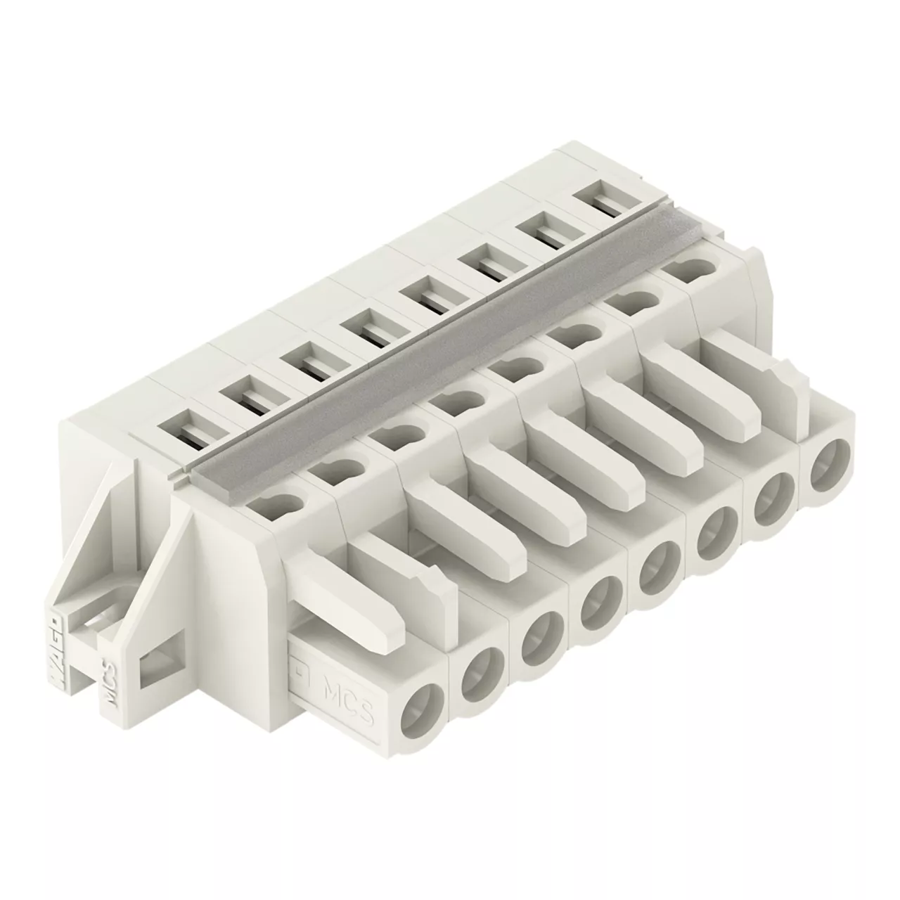 gniazdo 1-przewodowe; CAGE CLAMP®; 2,5 mm²; raster 5 mm; 8-bieg.; 100% ochrona przed błędnym połączeniem; kołnierz mocujący; 2,50 mm²; jasnoszary