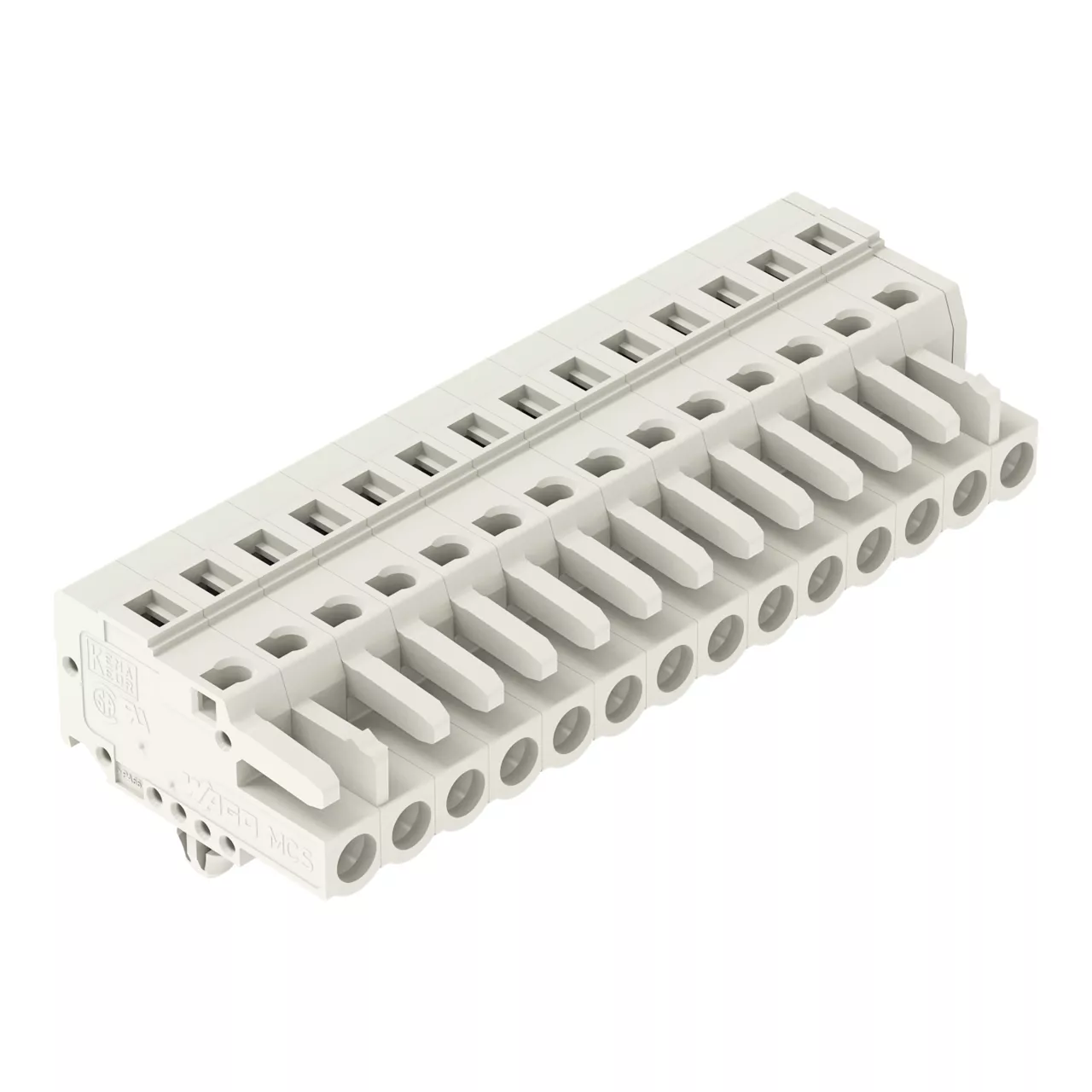 gniazdo 1-przewodowe; CAGE CLAMP®; 2,5 mm²; raster 5 mm; 14-bieg.; 100% ochrona przed błędnym połączeniem; stopki zatrzaskowe; 2,50 mm²; jasnoszary
