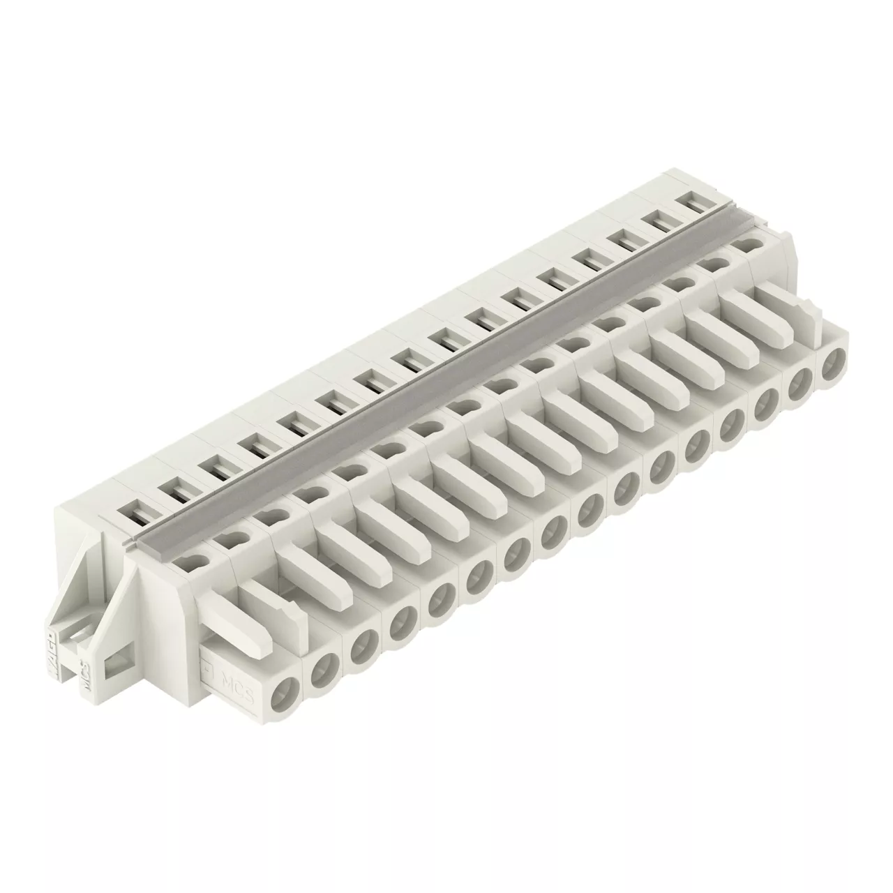 gniazdo 1-przewodowe; CAGE CLAMP®; 2,5 mm²; raster 5 mm; 16-bieg.; 100% ochrona przed błędnym połączeniem; kołnierz mocujący; 2,50 mm²; jasnoszary