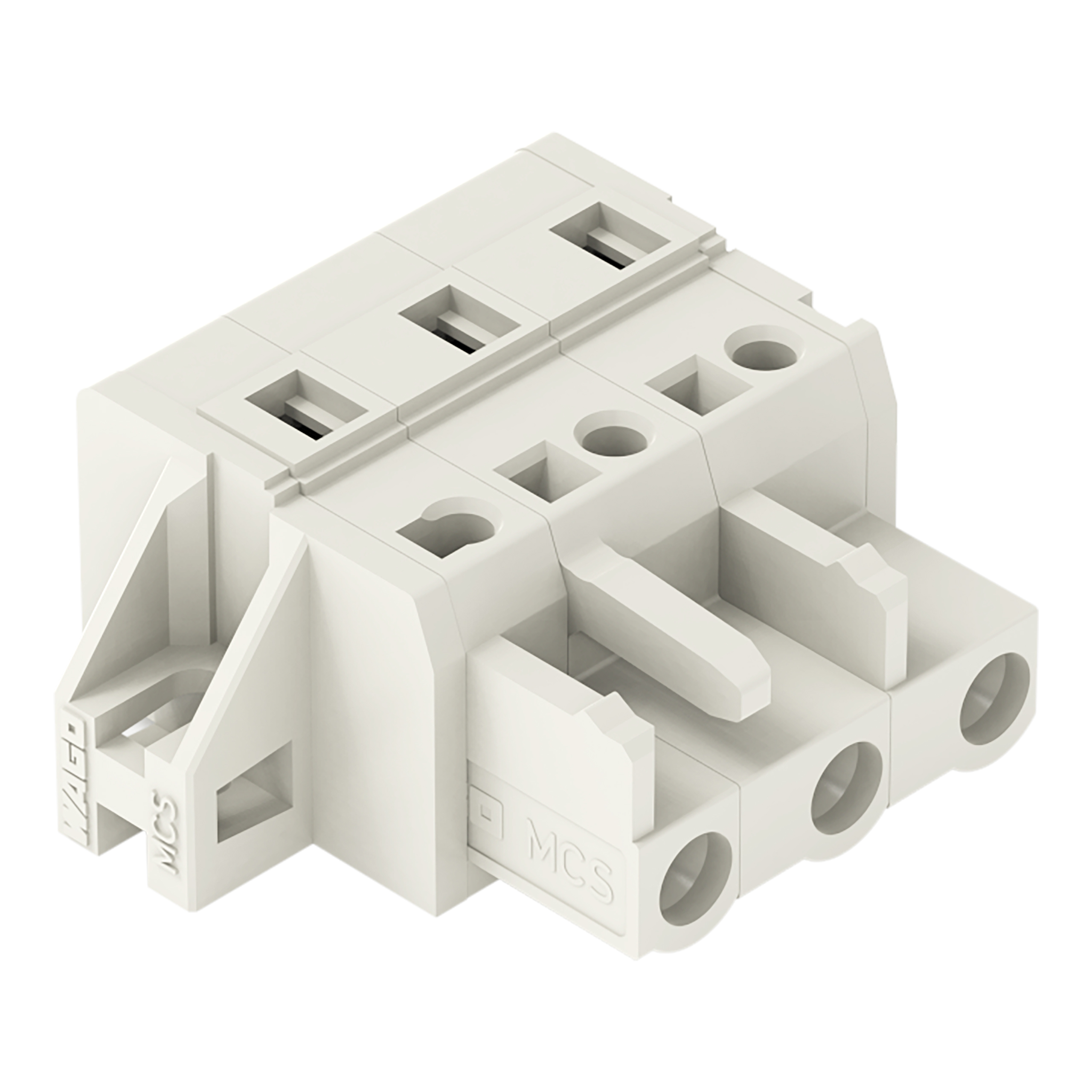 gniazdo 1-przewodowe; CAGE CLAMP®; 2,5 mm²; raster 7,5 mm; 3-bieg.; 100% ochrona przed błędnym połączeniem; kołnierz mocujący; 2,50 mm²; jasnoszary