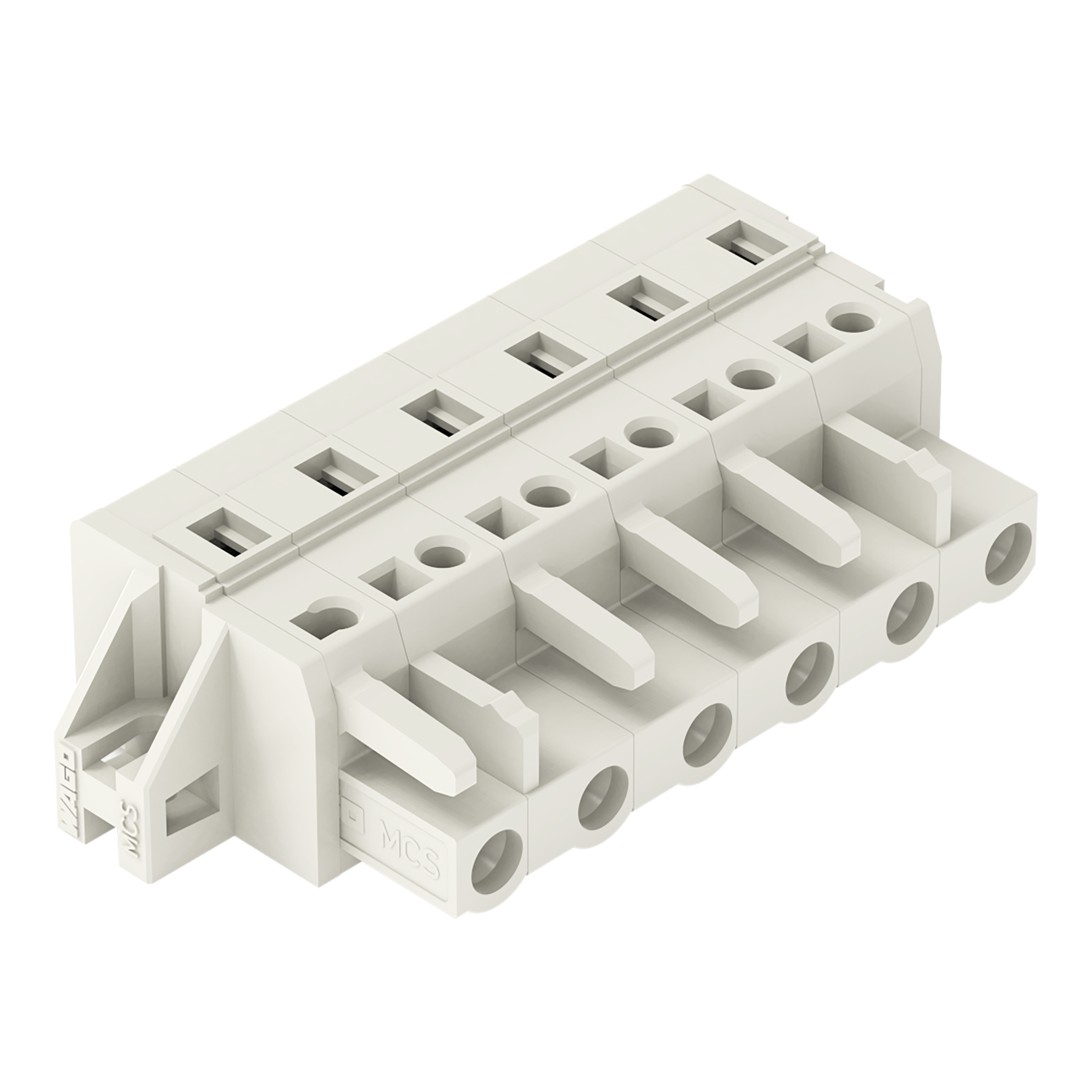 gniazdo 1-przewodowe; CAGE CLAMP®; 2,5 mm²; raster 7,5 mm; 6-bieg.; 100% ochrona przed błędnym połączeniem; kołnierz mocujący; 2,50 mm²; jasnoszary