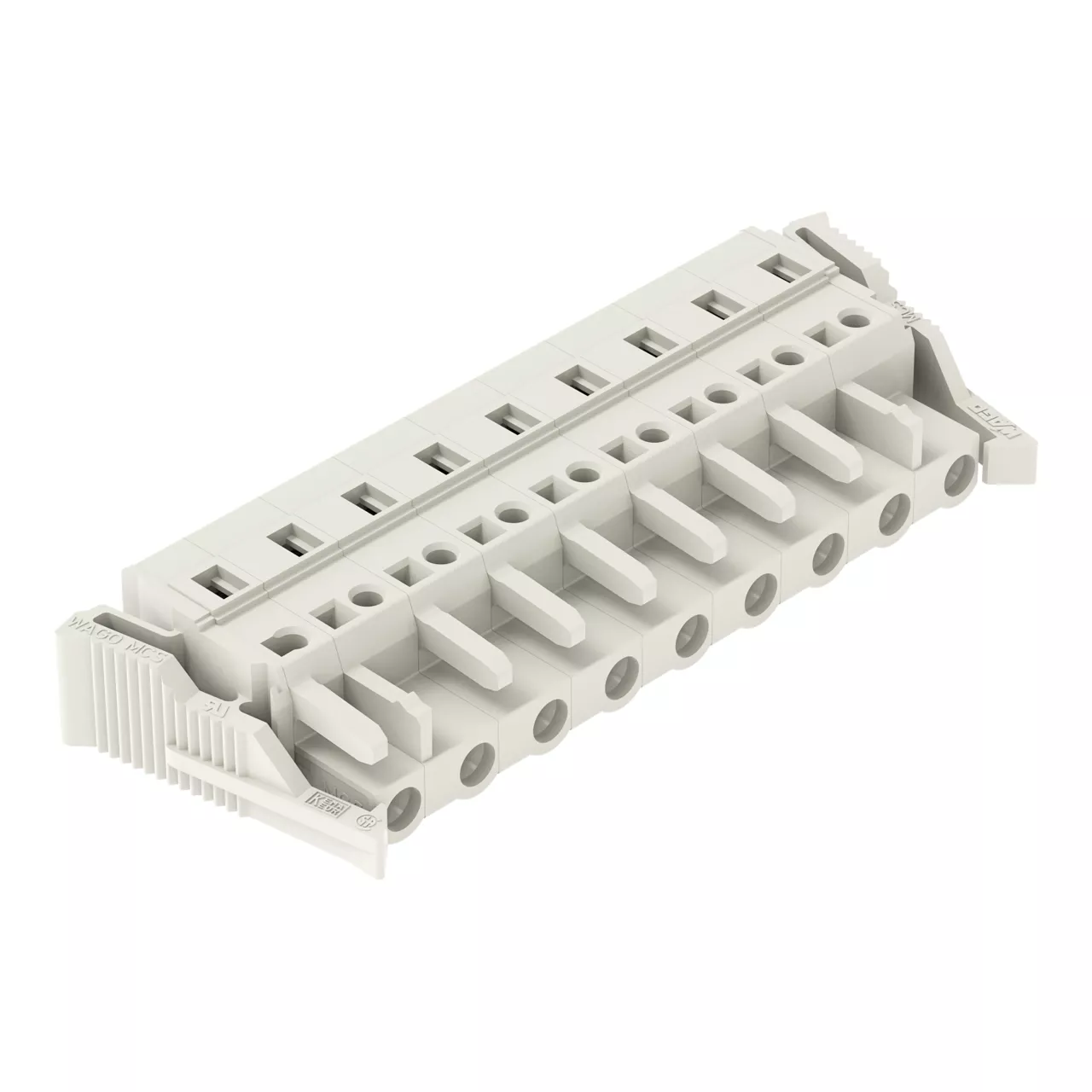 gniazdo 1-przewodowe; CAGE CLAMP®; 2,5 mm²; raster 7,5 mm; 9-bieg.; 100% ochrona przed błędnym połączeniem; boczne zaczepy ryglujące; 2,50 mm²; jasnoszary