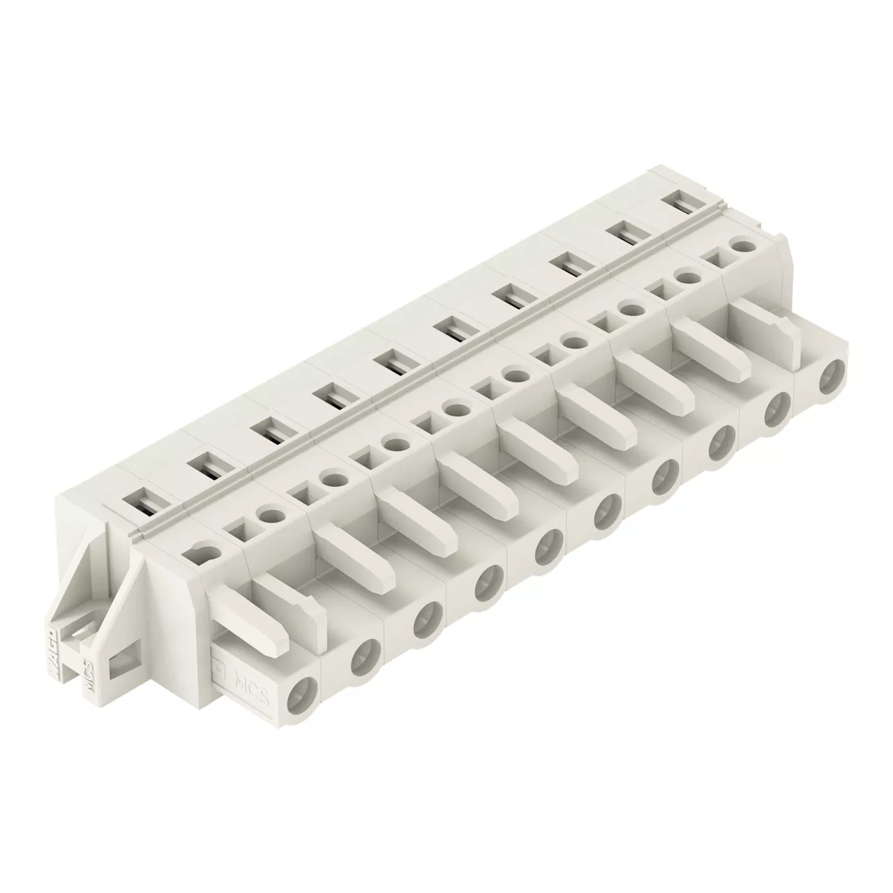 gniazdo 1-przewodowe; CAGE CLAMP®; 2,5 mm²; raster 7,5 mm; 10-bieg.; 100% ochrona przed błędnym połączeniem; kołnierz mocujący; 2,50 mm²; jasnoszary