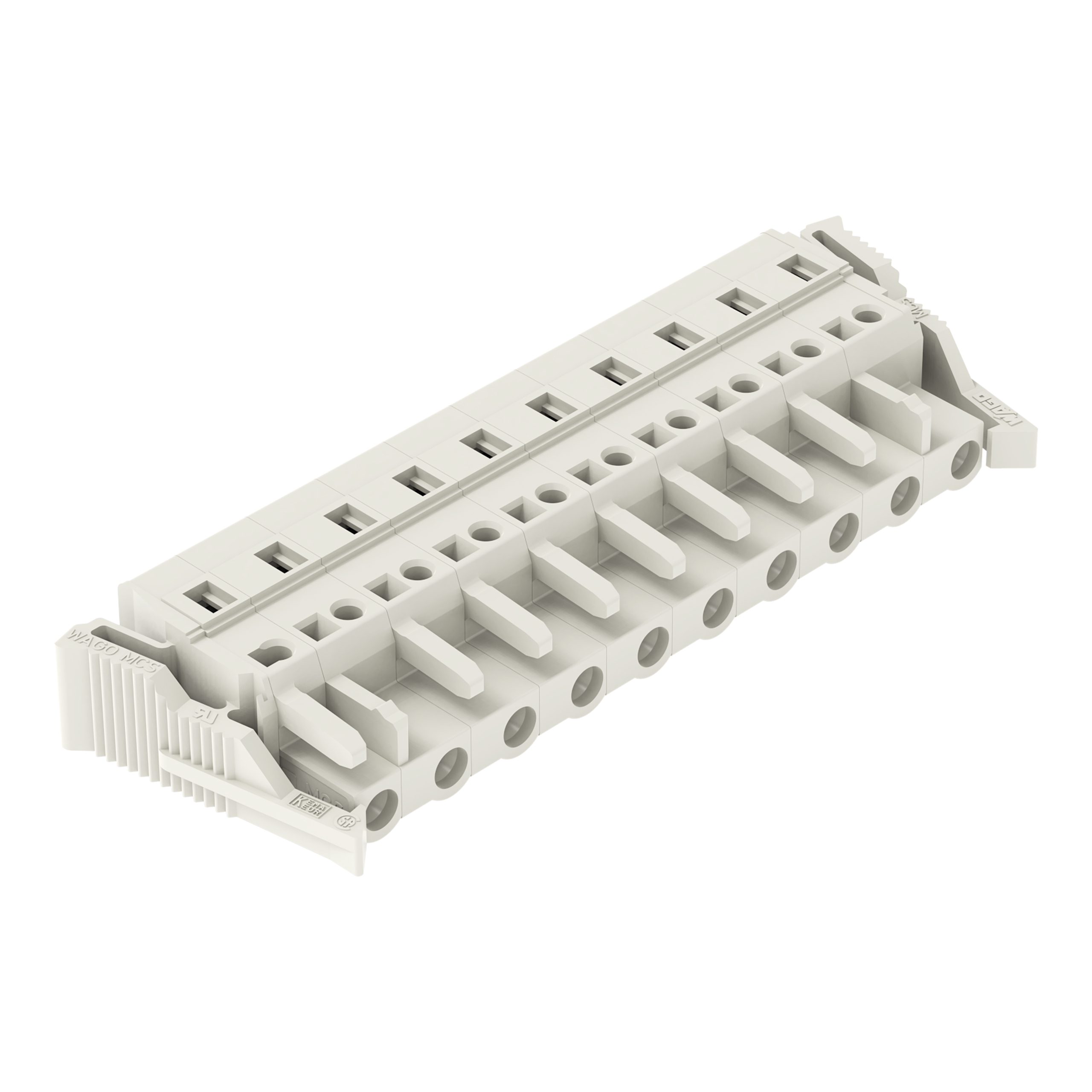 gniazdo 1-przewodowe; CAGE CLAMP®; 2,5 mm²; raster 7,5 mm; 10-bieg.; 100% ochrona przed błędnym połączeniem; boczne zaczepy ryglujące; 2,50 mm²; jasnoszary