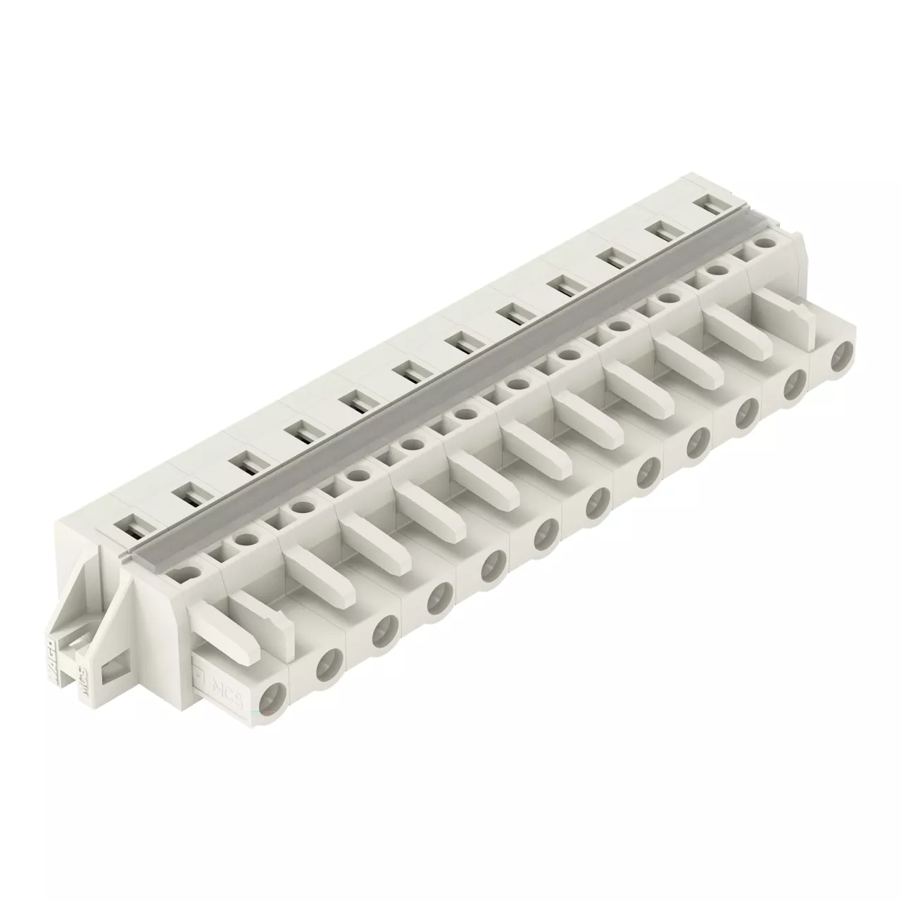 gniazdo 1-przewodowe; CAGE CLAMP®; 2,5 mm²; raster 7,5 mm; 12-bieg.; 100% ochrona przed błędnym połączeniem; kołnierz mocujący; 2,50 mm²; jasnoszary