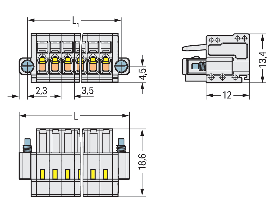 gniazdo 1-przewodowe; CAGE CLAMP®; 1,5 mm²; raster 3,5 mm; 2-bieg.; 100% ochrona przed błędnym połączeniem; śrubowy uchwyt montażowy; 1,50 mm²; jasnoszary