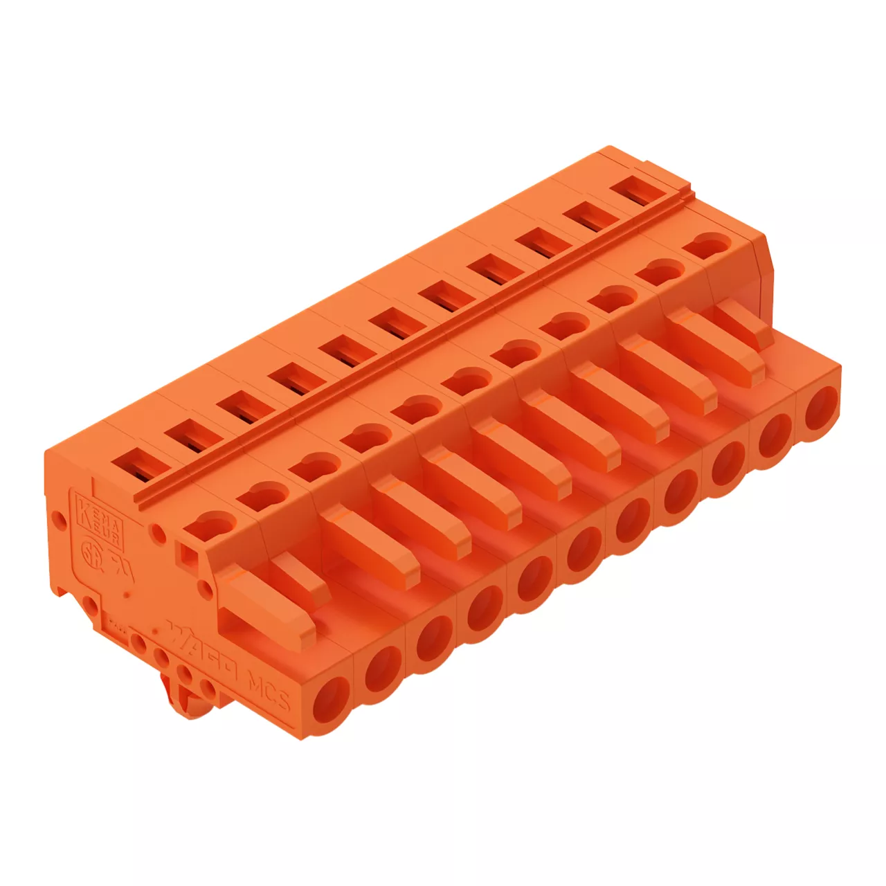 gniazdo 1-przewodowe; CAGE CLAMP®; 2,5 mm²; raster 5,08 mm; 11-bieg.; stopki zatrzaskowe; pomarańczowy