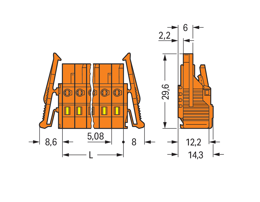 gniazdo 1-przewodowe; CAGE CLAMP®; 2,5 mm²; raster 5,08 mm; 12-bieg.; boczne zaczepy ryglujące; pomarańczowy