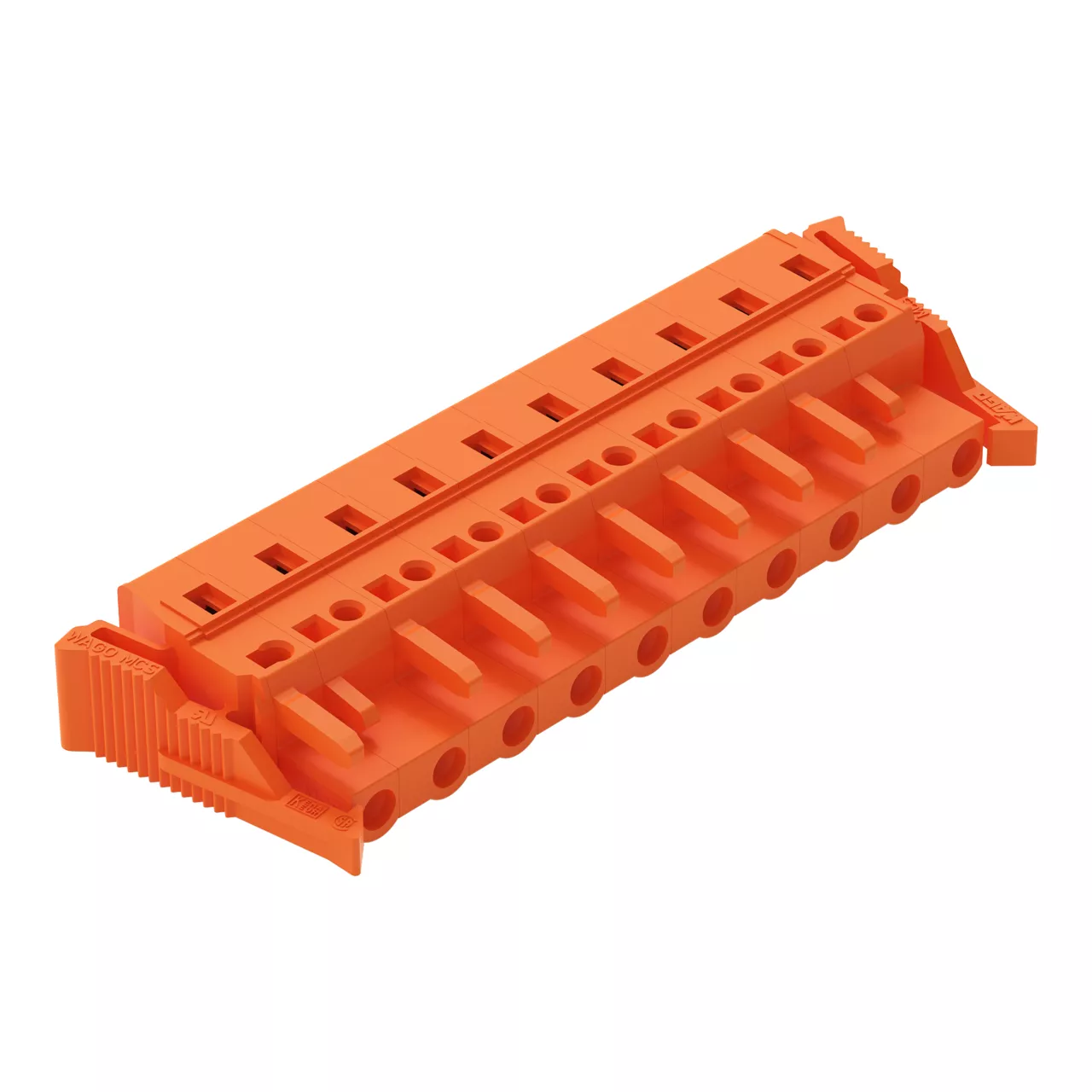 gniazdo 1-przewodowe; CAGE CLAMP®; 2,5 mm²; raster 7,62 mm; 10-bieg.; boczne zaczepy ryglujące; pomarańczowy