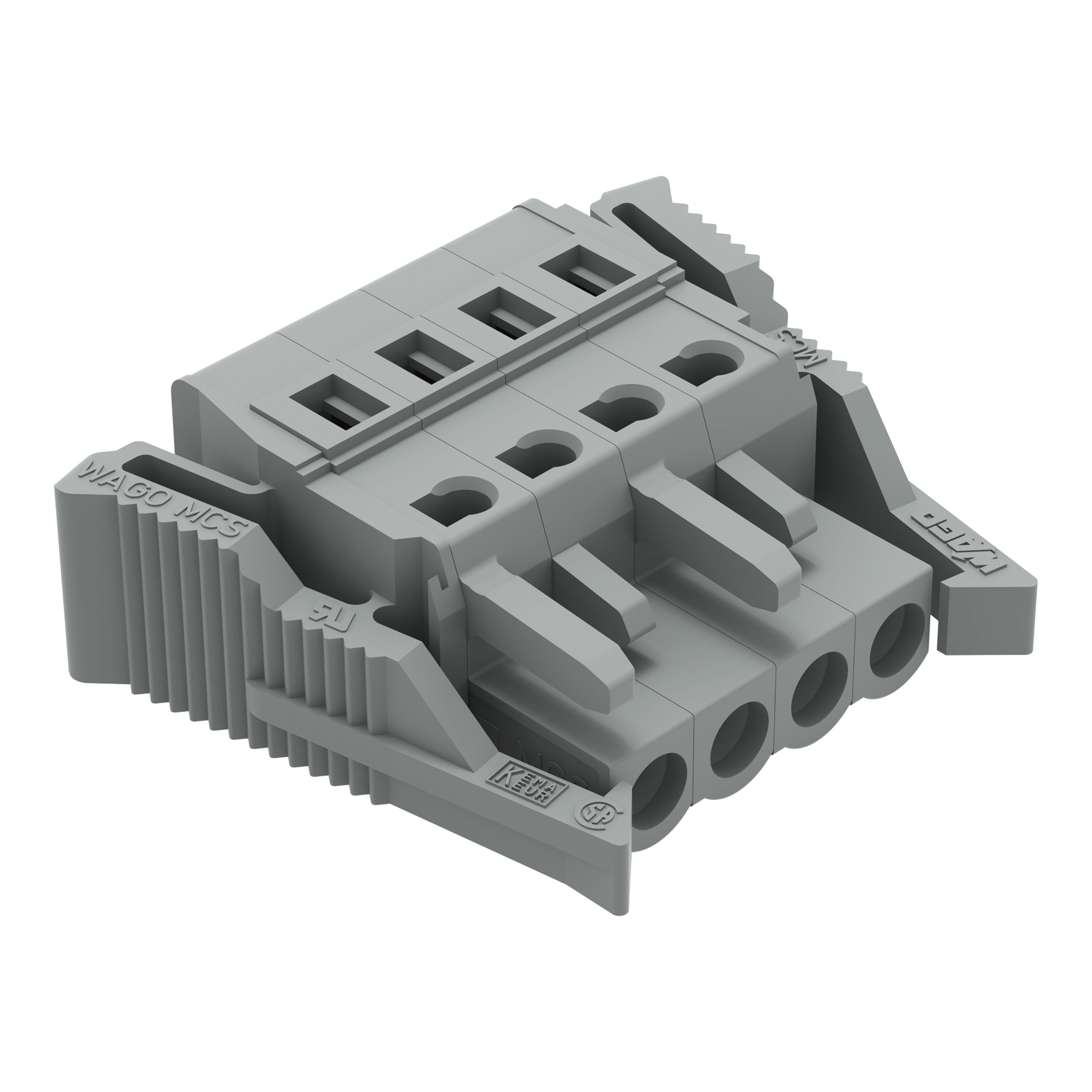gniazdo 1-przewodowe; CAGE CLAMP®; 2,5 mm²; raster 5 mm; 4-bieg.; boczne zaczepy ryglujące; szary
