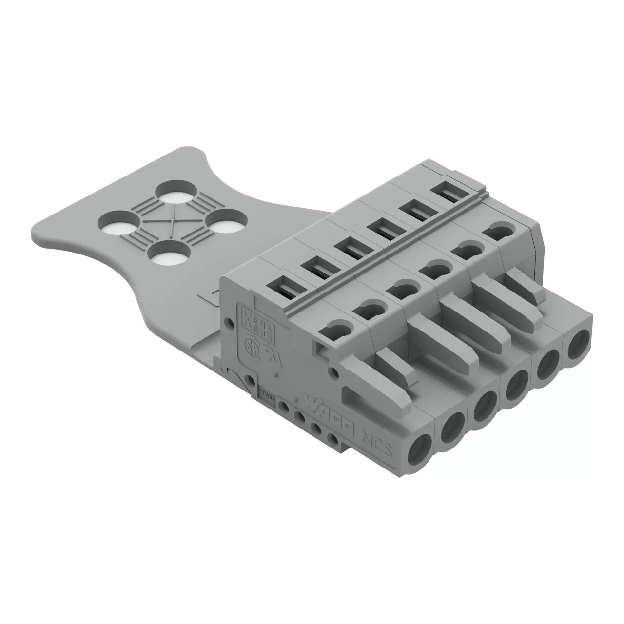 gniazdo 1-przewodowe; CAGE CLAMP®; 2,5 mm²; raster 5 mm; 6-bieg.; płytka odciążająca przewody; szary
