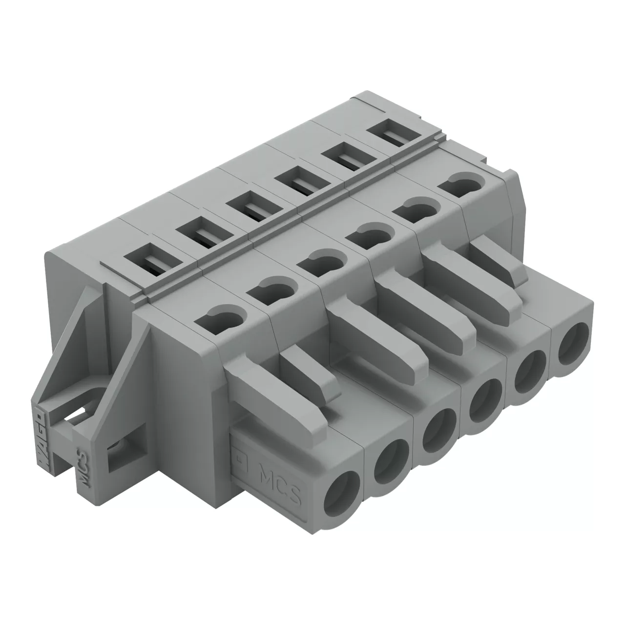 gniazdo 1-przewodowe; CAGE CLAMP®; 2,5 mm²; raster 5 mm; 6-bieg.; kołnierz mocujący; szary