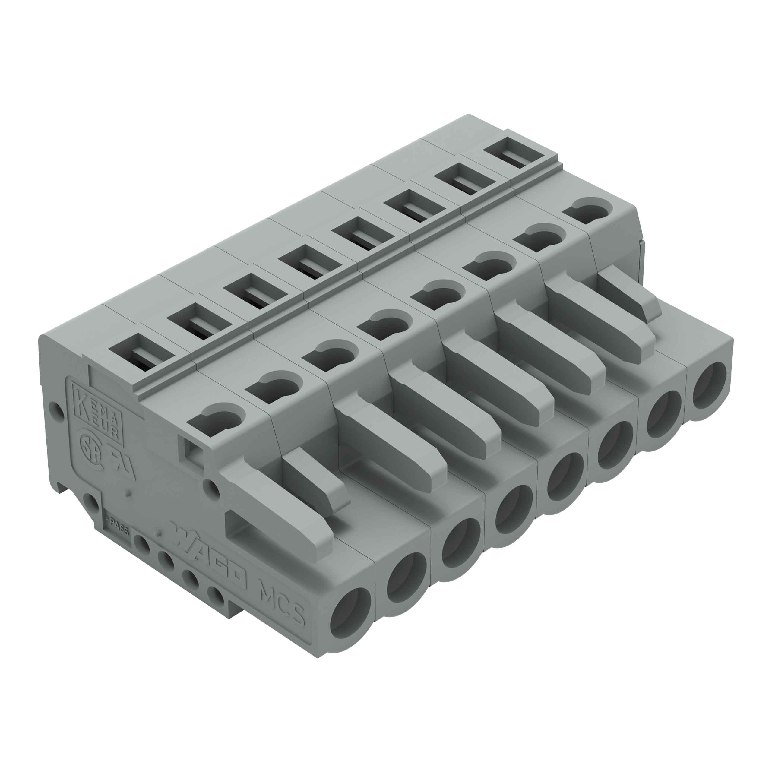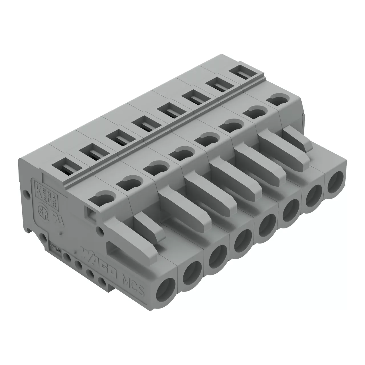gniazdo 1-przewodowe; CAGE CLAMP®; 2,5 mm²; raster 5 mm; 8-bieg.; ze zintegrowaną ścianką końcową; szary