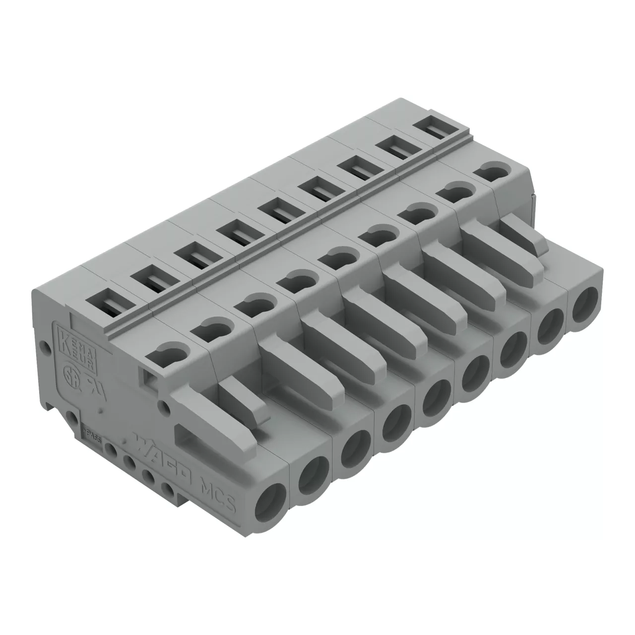 gniazdo 1-przewodowe; CAGE CLAMP®; 2,5 mm²; raster 5 mm; 9-bieg.; ze zintegrowaną ścianką końcową; szary