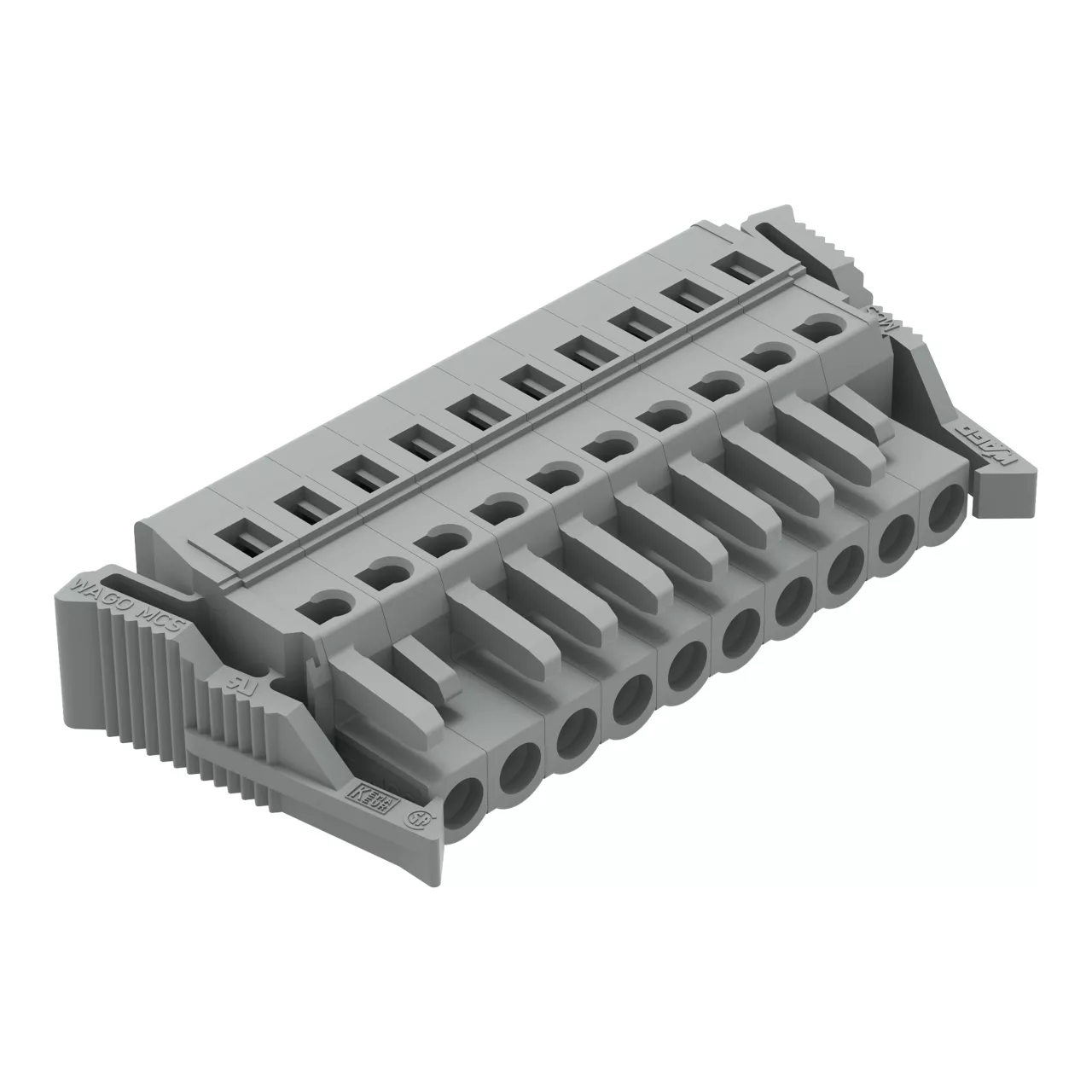 gniazdo 1-przewodowe; CAGE CLAMP®; 2,5 mm²; raster 5 mm; 10-bieg.; boczne zaczepy ryglujące; szary