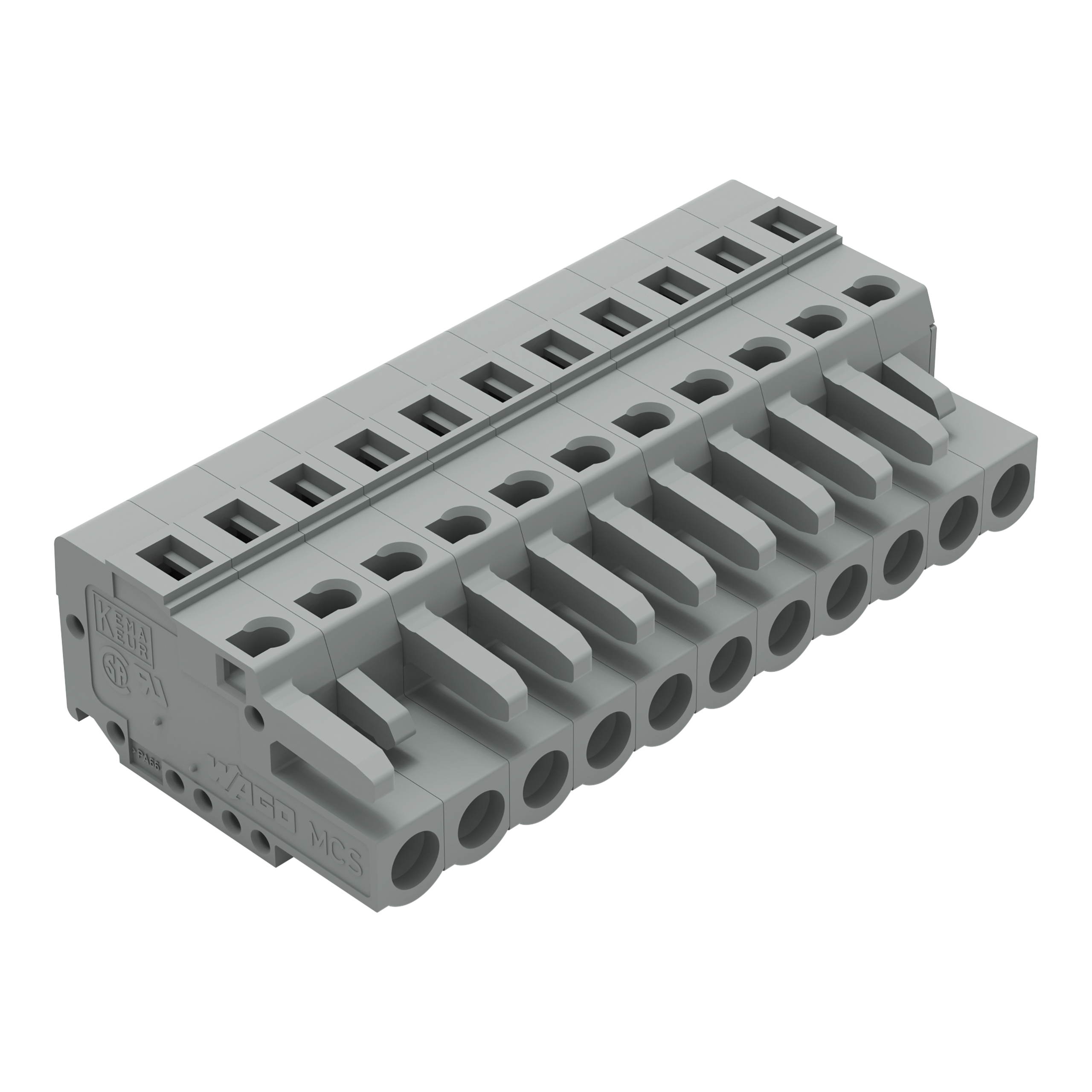 gniazdo 1-przewodowe; CAGE CLAMP®; 2,5 mm²; raster 5 mm; 11-bieg.; ze zintegrowaną ścianką końcową; szary