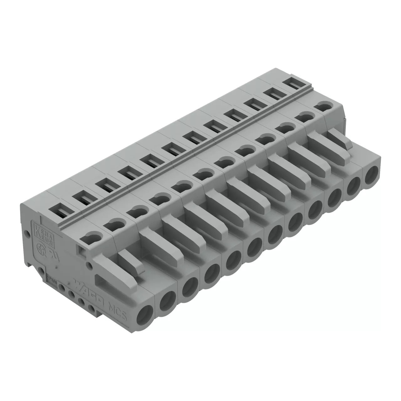 gniazdo 1-przewodowe; CAGE CLAMP®; 2,5 mm²; raster 5 mm; 12-bieg.; ze zintegrowaną ścianką końcową; szary