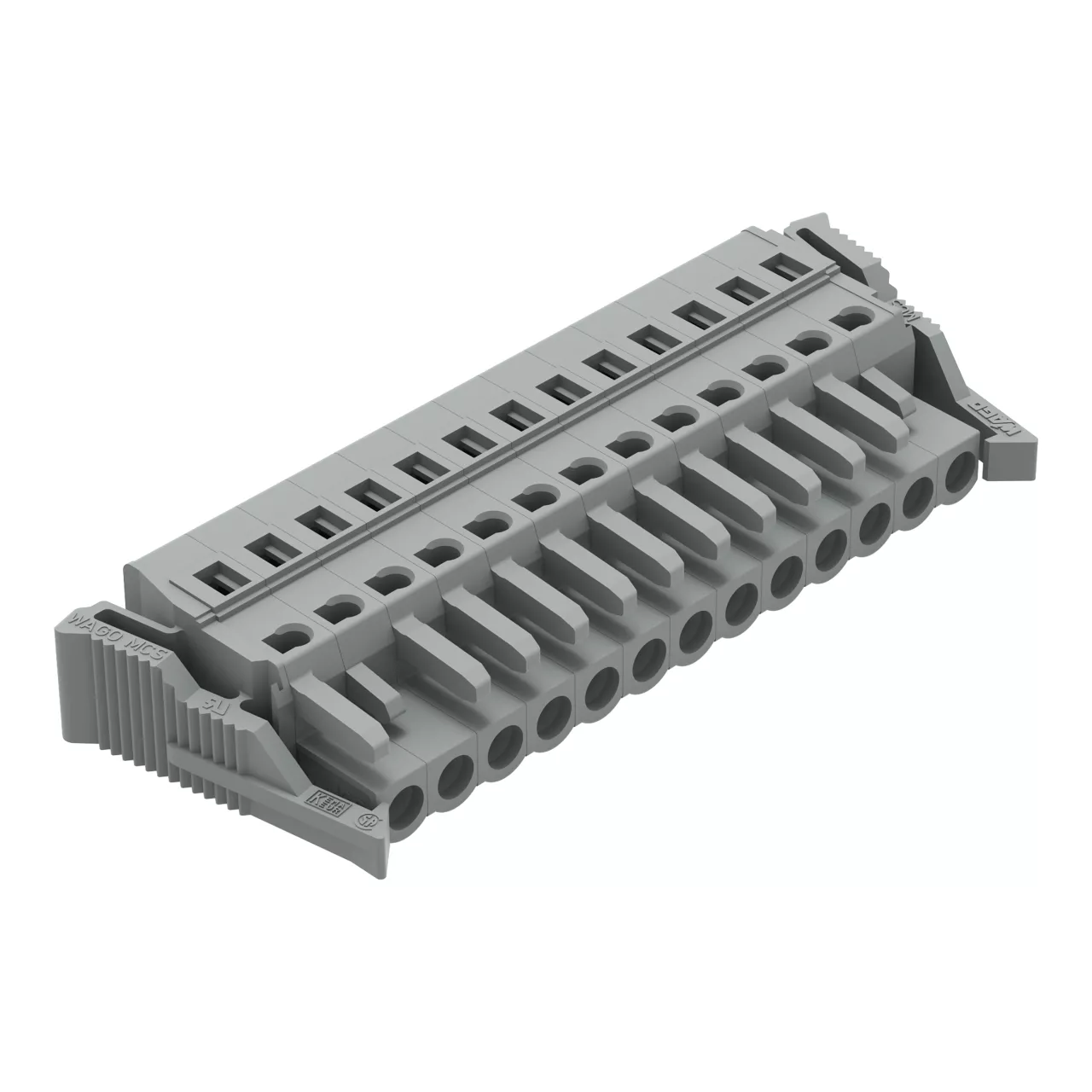 gniazdo 1-przewodowe; CAGE CLAMP®; 2,5 mm²; raster 5 mm; 13-bieg.; boczne zaczepy ryglujące; szary