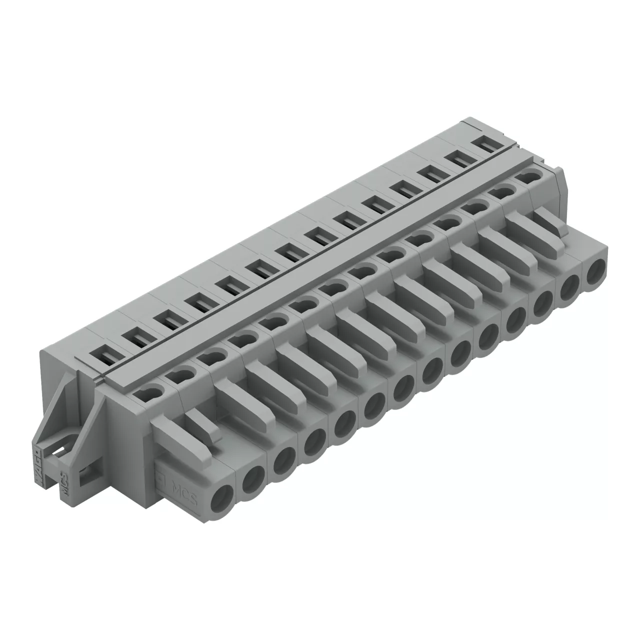 gniazdo 1-przewodowe; CAGE CLAMP®; 2,5 mm²; raster 5 mm; 14-bieg.; kołnierz mocujący; szary