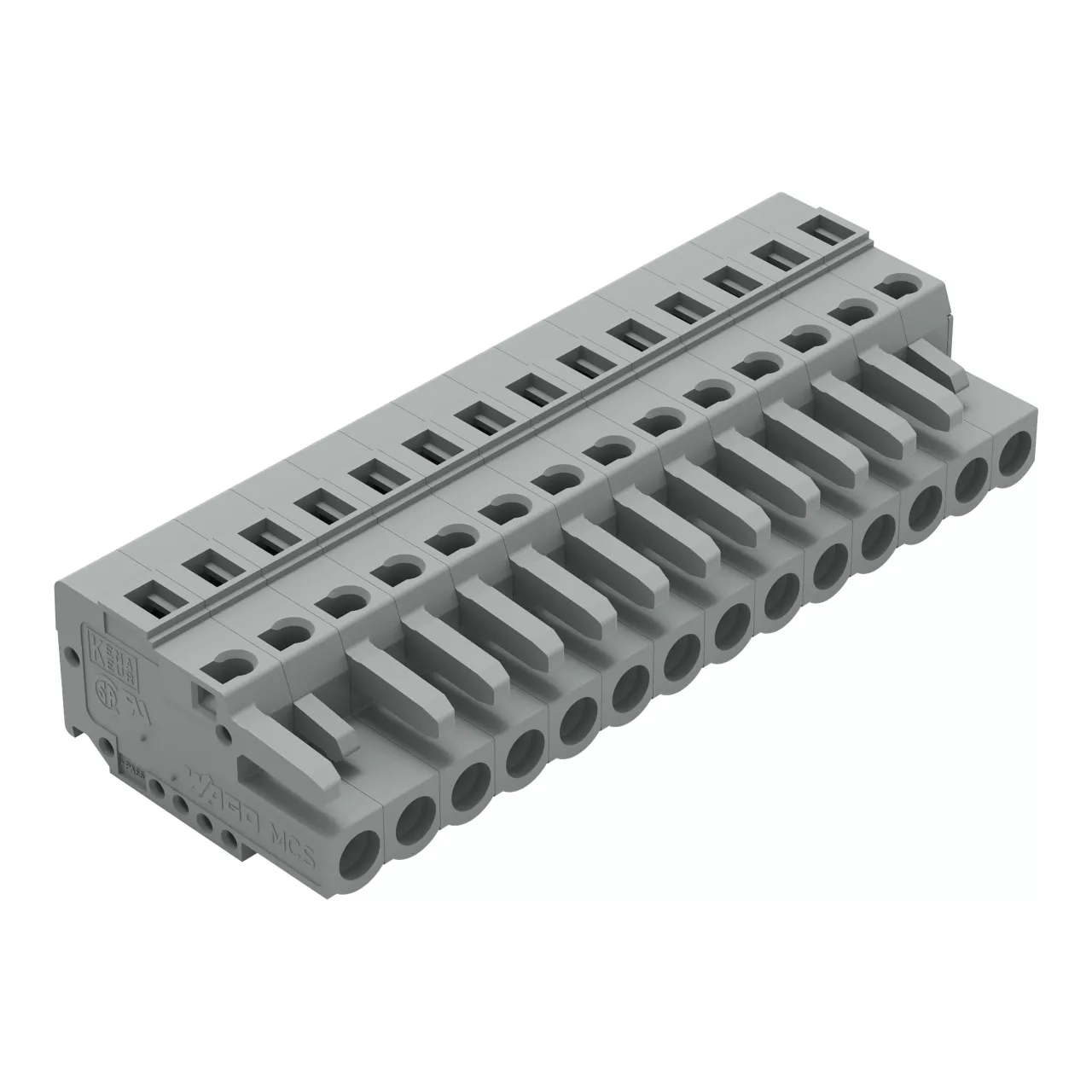 gniazdo 1-przewodowe; CAGE CLAMP®; 2,5 mm²; raster 5 mm; 14-bieg.; ze zintegrowaną ścianką końcową; szary