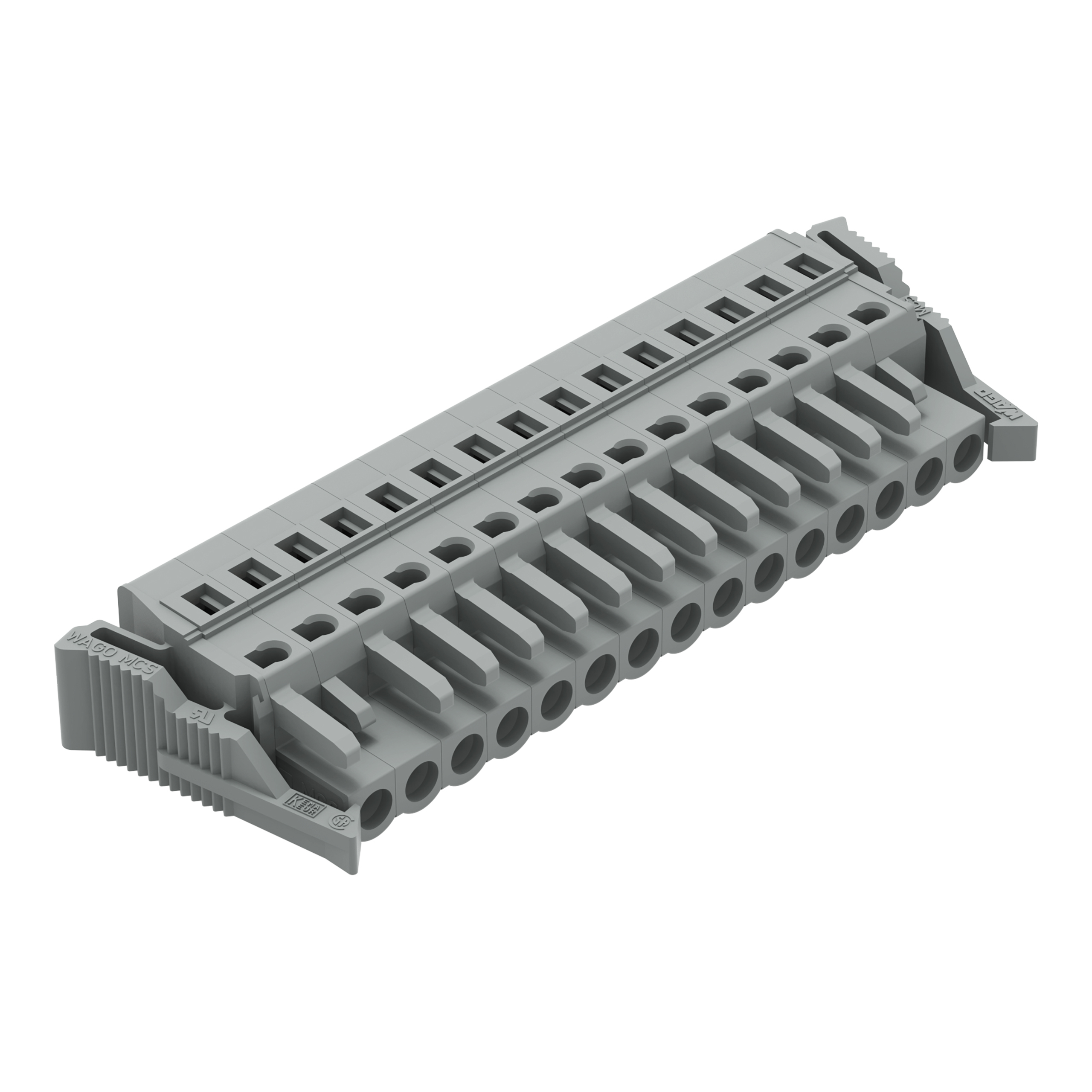 gniazdo 1-przewodowe; CAGE CLAMP®; 2,5 mm²; raster 5 mm; 15-bieg.; boczne zaczepy ryglujące; szary