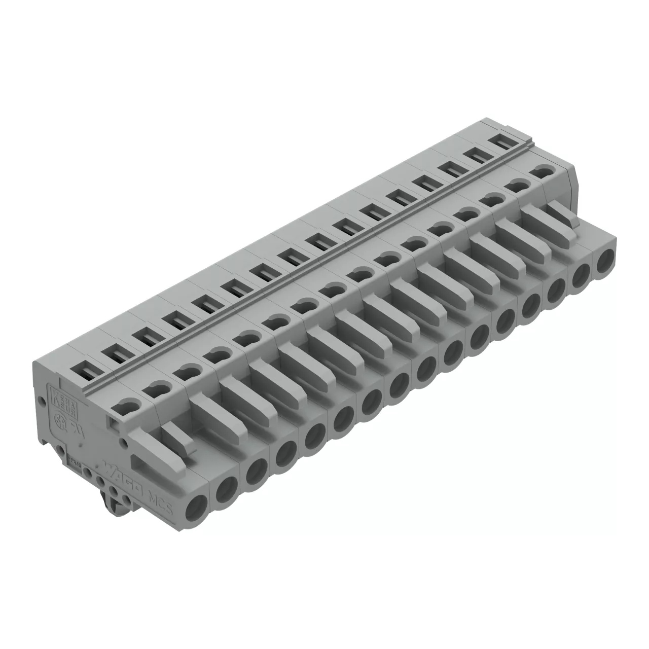 gniazdo 1-przewodowe; CAGE CLAMP®; 2,5 mm²; raster 5 mm; 16-bieg.; stopki zatrzaskowe; szary