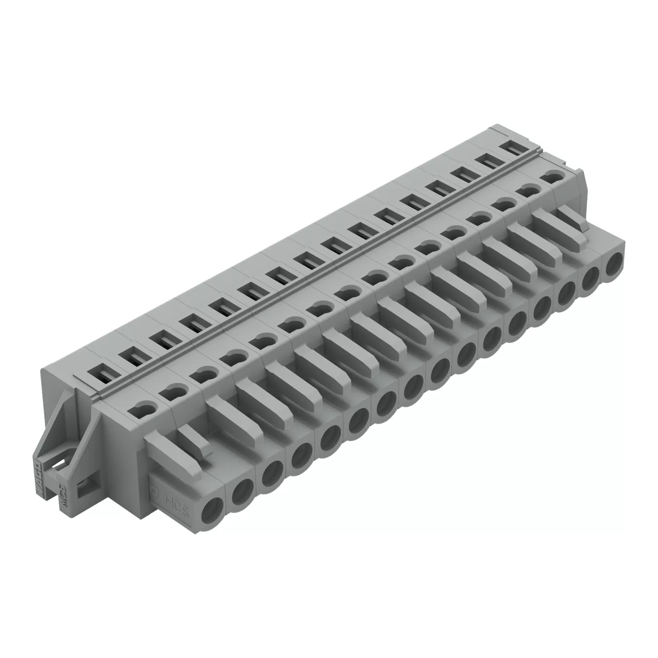 gniazdo 1-przewodowe; CAGE CLAMP®; 2,5 mm²; raster 5 mm; 16-bieg.; kołnierz mocujący; szary