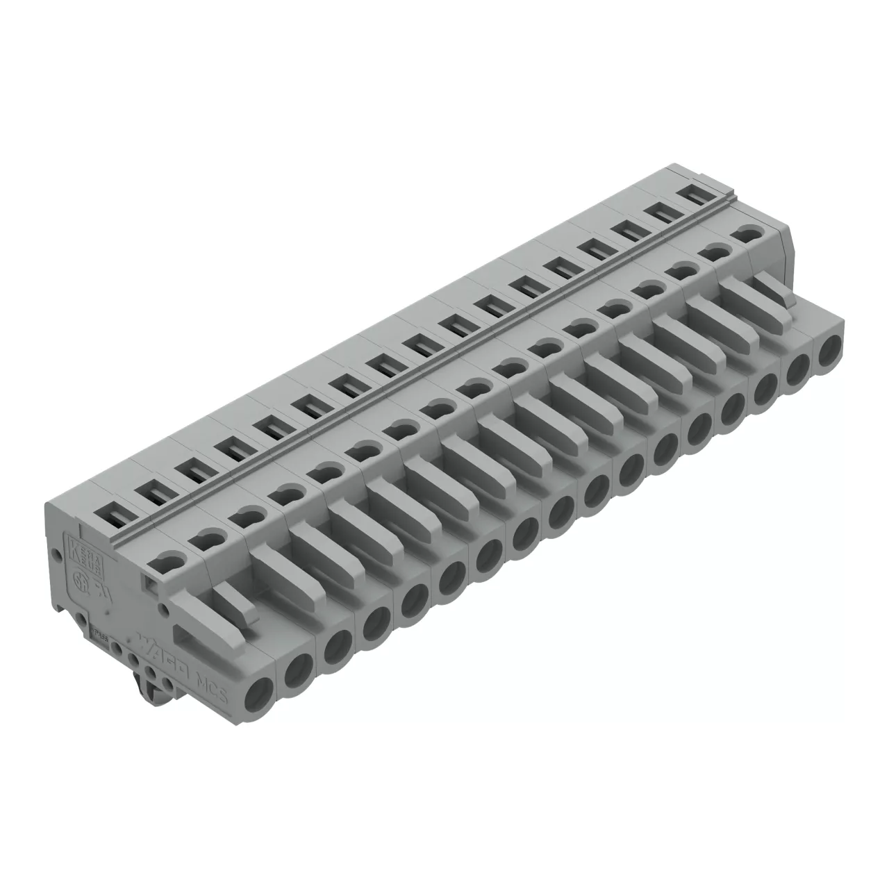 gniazdo 1-przewodowe; CAGE CLAMP®; 2,5 mm²; raster 5 mm; 17-bieg.; stopki zatrzaskowe; szary