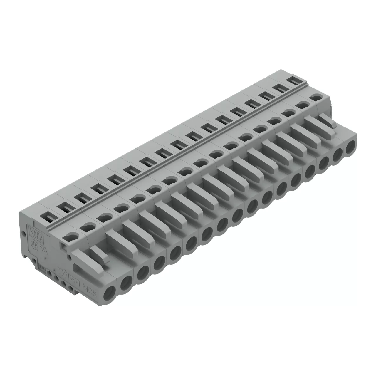 gniazdo 1-przewodowe; CAGE CLAMP®; 2,5 mm²; raster 5 mm; 17-bieg.; ze zintegrowaną ścianką końcową; szary