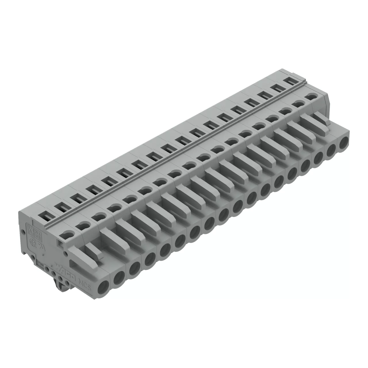 gniazdo 1-przewodowe; CAGE CLAMP®; 2,5 mm²; raster 5 mm; 18-bieg.; stopki zatrzaskowe; szary