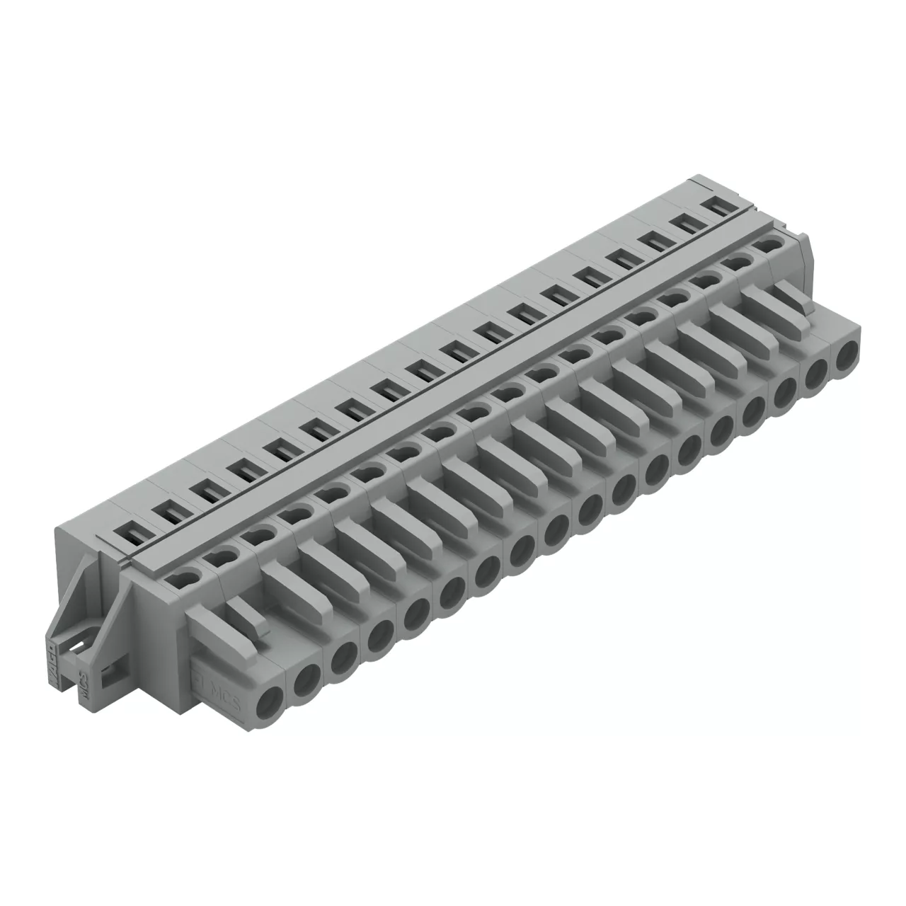 gniazdo 1-przewodowe; CAGE CLAMP®; 2,5 mm²; raster 5 mm; 18-bieg.; kołnierz mocujący; szary