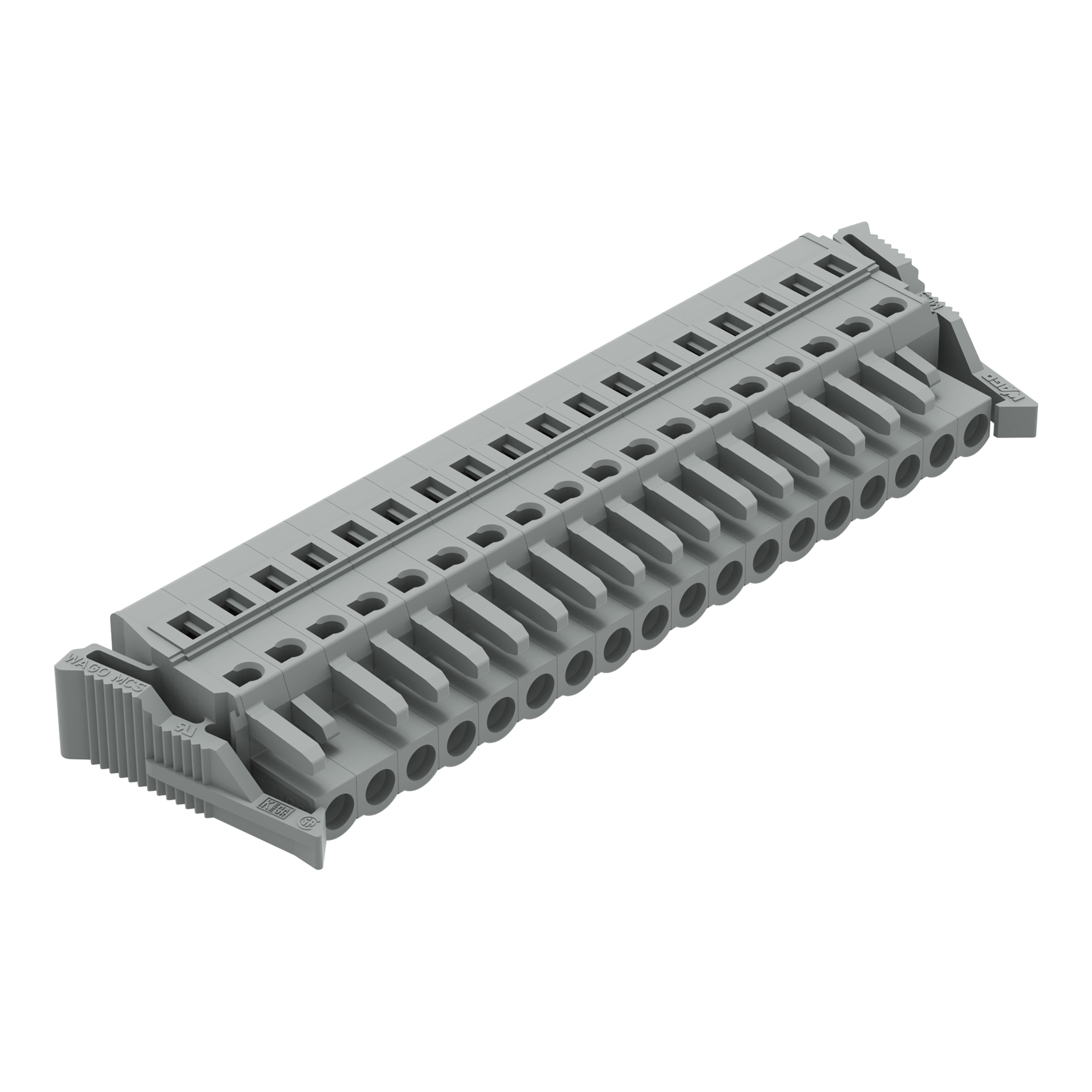 gniazdo 1-przewodowe; CAGE CLAMP®; 2,5 mm²; raster 5 mm; 18-bieg.; boczne zaczepy ryglujące; szary