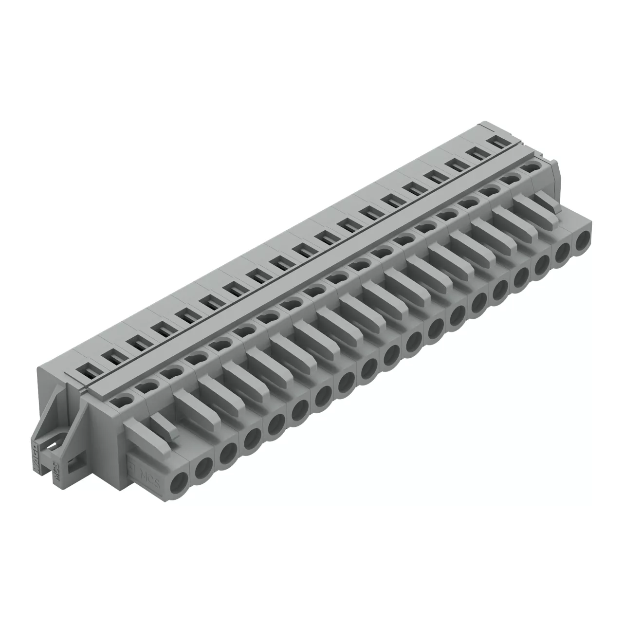 gniazdo 1-przewodowe; CAGE CLAMP®; 2,5 mm²; raster 5 mm; 19-bieg.; kołnierz mocujący; szary