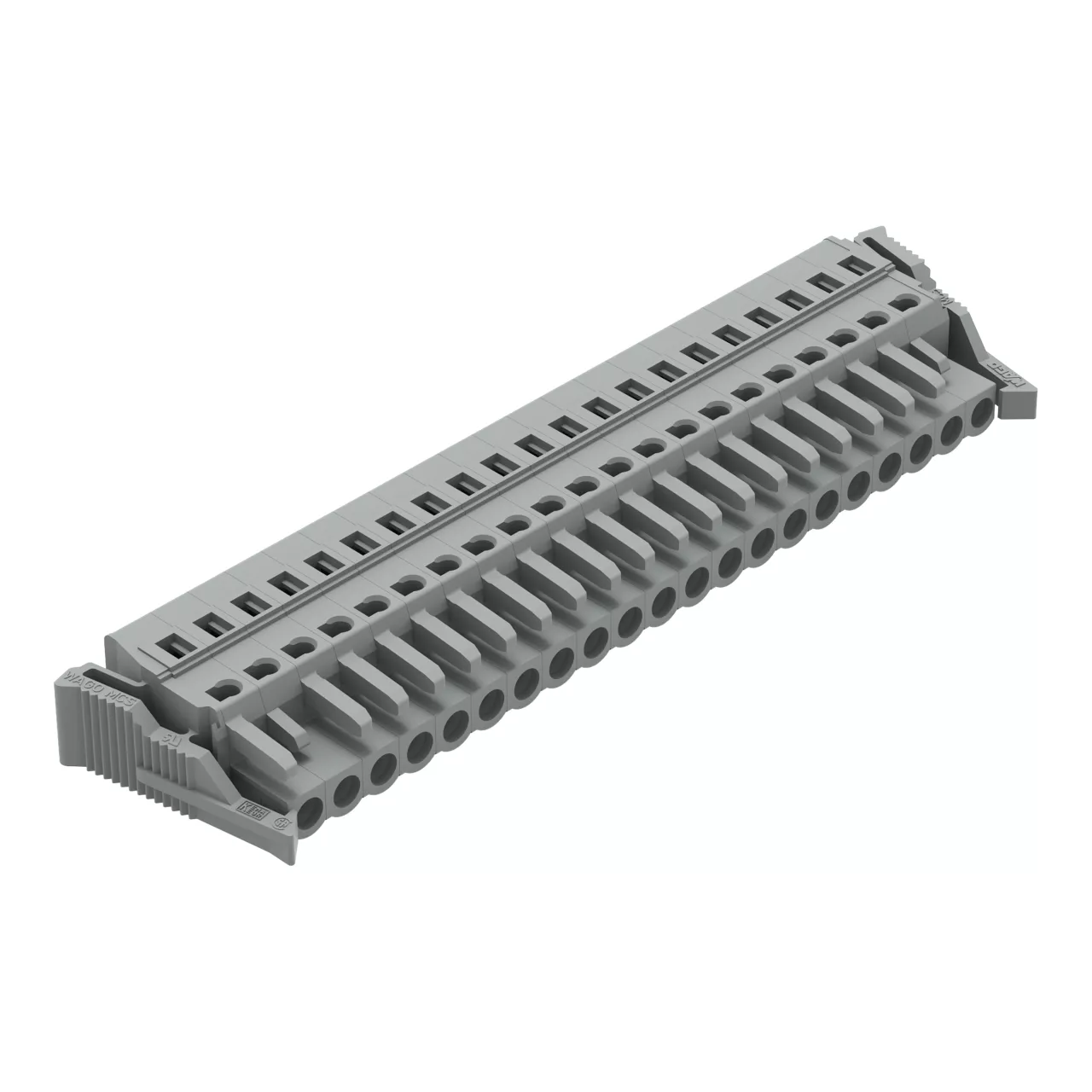 gniazdo 1-przewodowe; CAGE CLAMP®; 2,5 mm²; raster 5 mm; 21-bieg.; boczne zaczepy ryglujące; szary