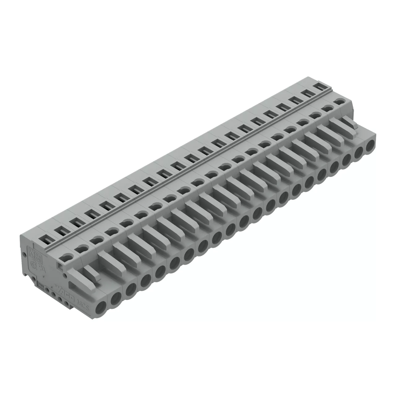 gniazdo 1-przewodowe; CAGE CLAMP®; 2,5 mm²; raster 5 mm; 21-bieg.; ze zintegrowaną ścianką końcową; szary