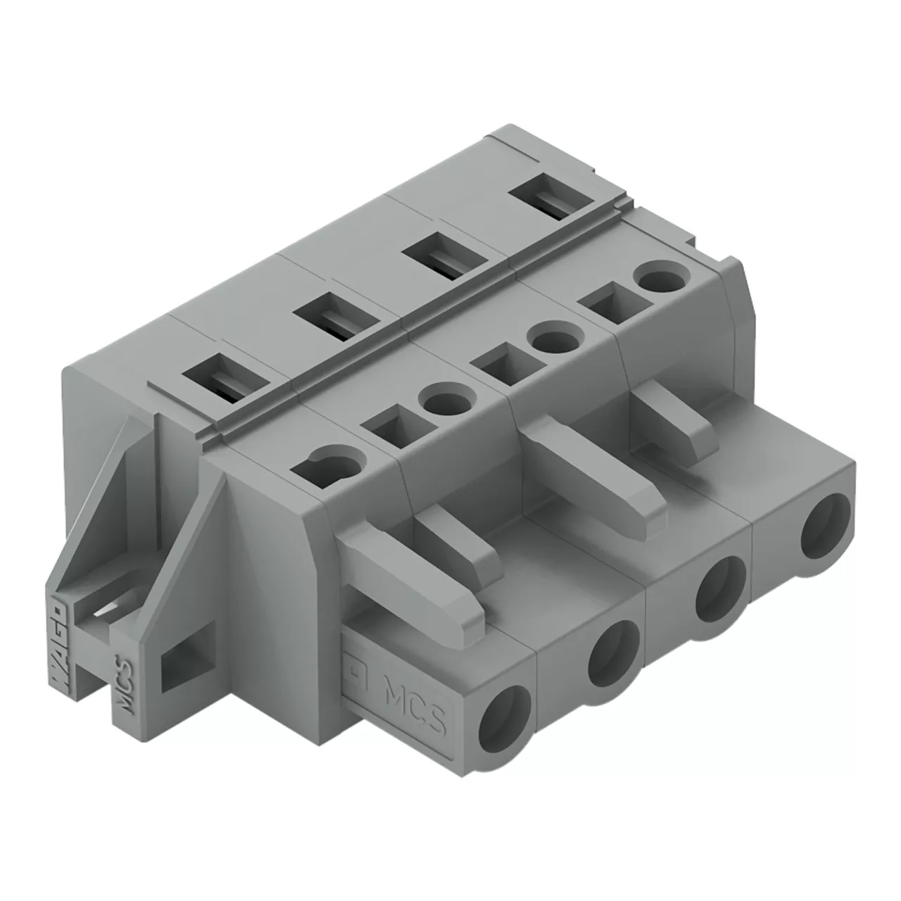 gniazdo 1-przewodowe; CAGE CLAMP®; 2,5 mm²; raster 7,5 mm; 4-bieg.; kołnierz mocujący; szary
