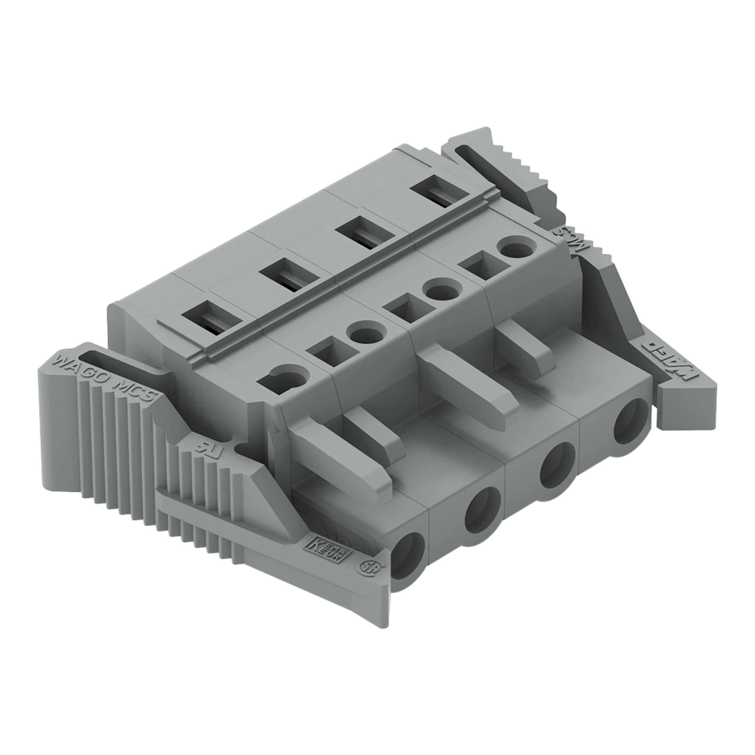 gniazdo 1-przewodowe; CAGE CLAMP®; 2,5 mm²; raster 7,5 mm; 4-bieg.; boczne zaczepy ryglujące; szary