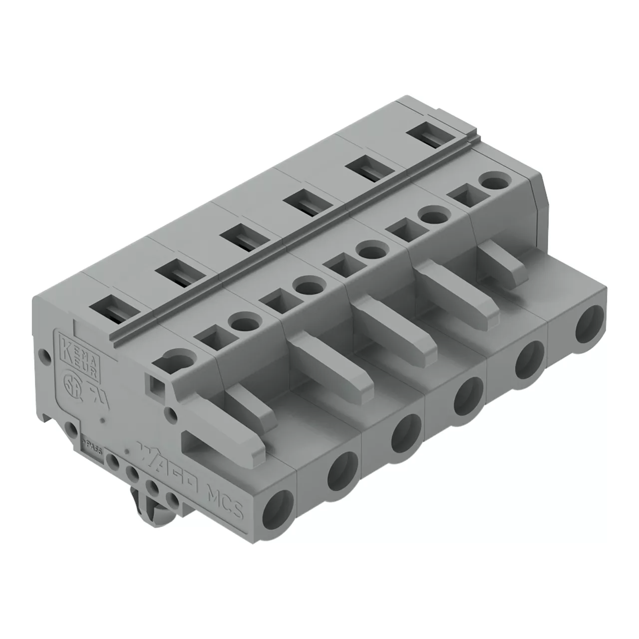 gniazdo 1-przewodowe; CAGE CLAMP®; 2,5 mm²; raster 7,5 mm; 6-bieg.; stopki zatrzaskowe; szary