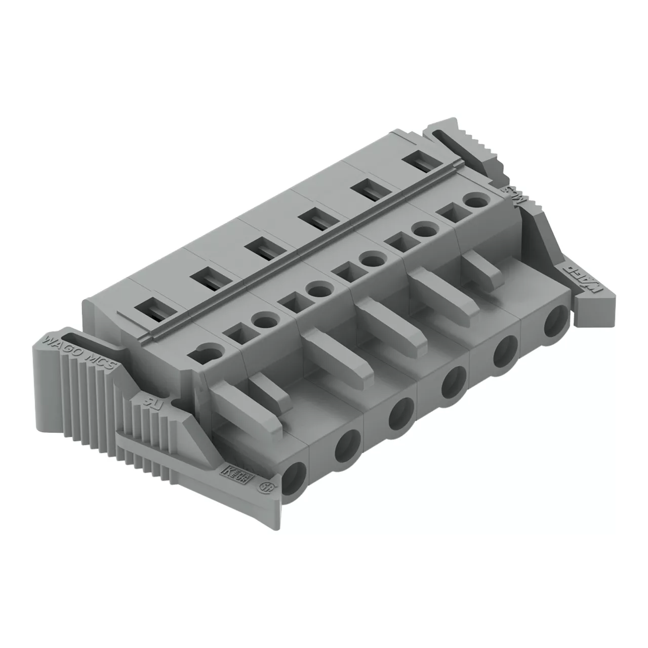 gniazdo 1-przewodowe; CAGE CLAMP®; 2,5 mm²; raster 7,5 mm; 6-bieg.; boczne zaczepy ryglujące; szary
