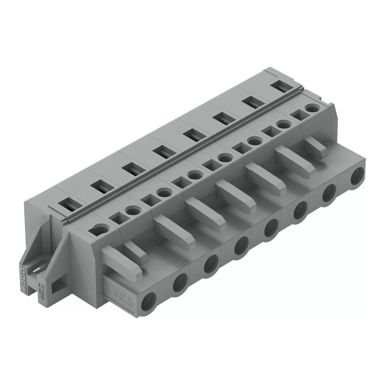gniazdo 1-przewodowe; CAGE CLAMP®; 2,5 mm²; raster 7,5 mm; 8-bieg.; kołnierz mocujący; szary