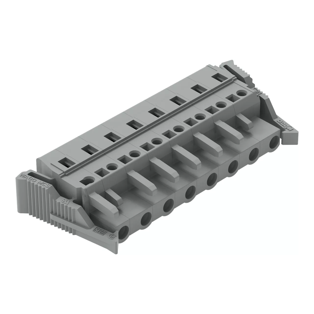 gniazdo 1-przewodowe; CAGE CLAMP®; 2,5 mm²; raster 7,5 mm; 8-bieg.; boczne zaczepy ryglujące; szary