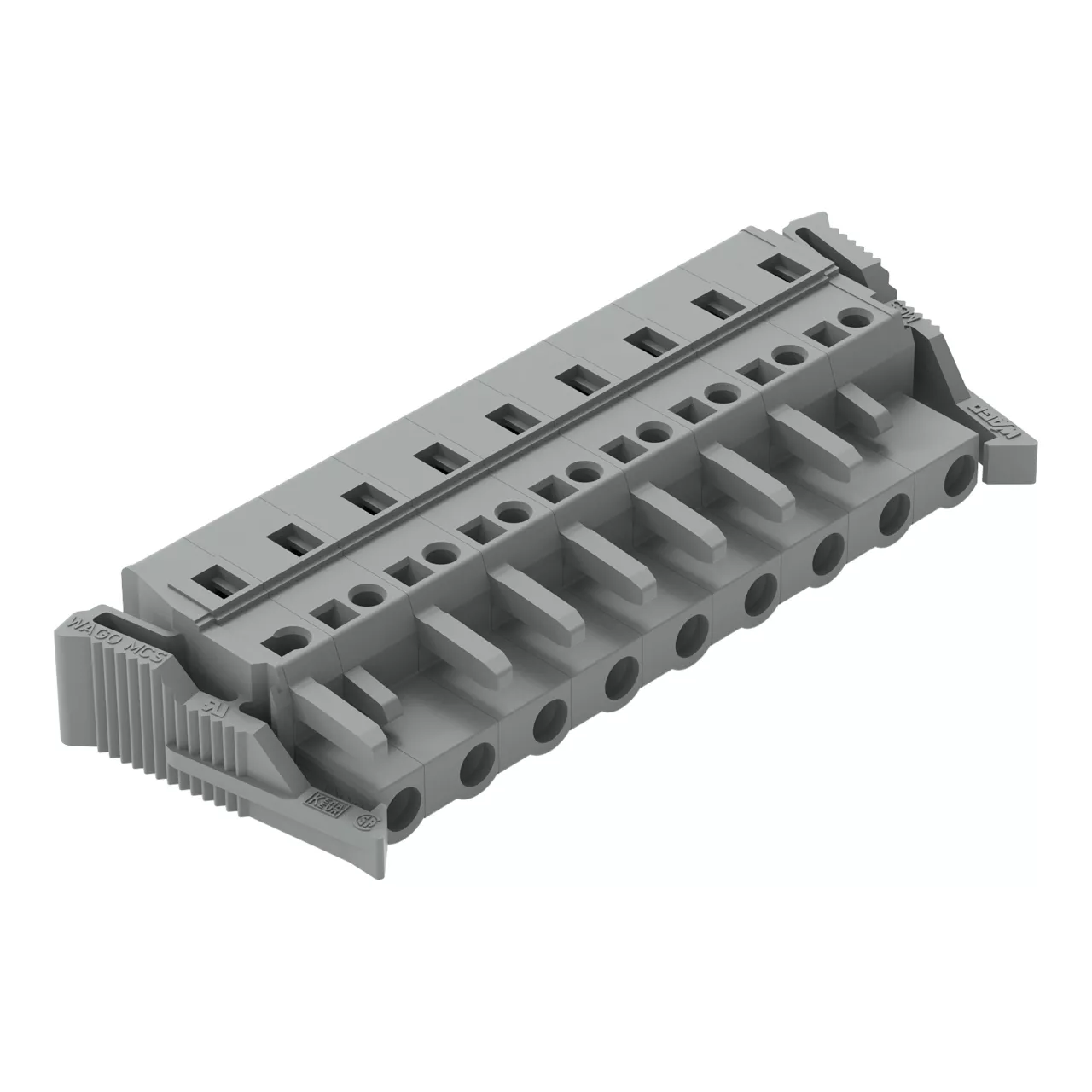 gniazdo 1-przewodowe; CAGE CLAMP®; 2,5 mm²; raster 7,5 mm; 9-bieg.; boczne zaczepy ryglujące; szary