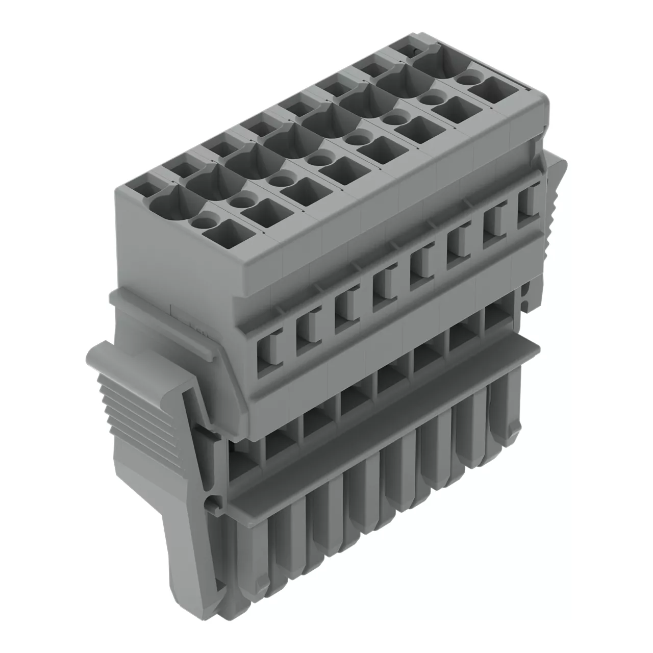 gniazdo 1-przewodowe; CAGE CLAMP®; 4 mm²; raster 5 mm; 8-bieg.; wypust kodujący; boczne zaczepy ryglujące; 4,00 mm²; szary