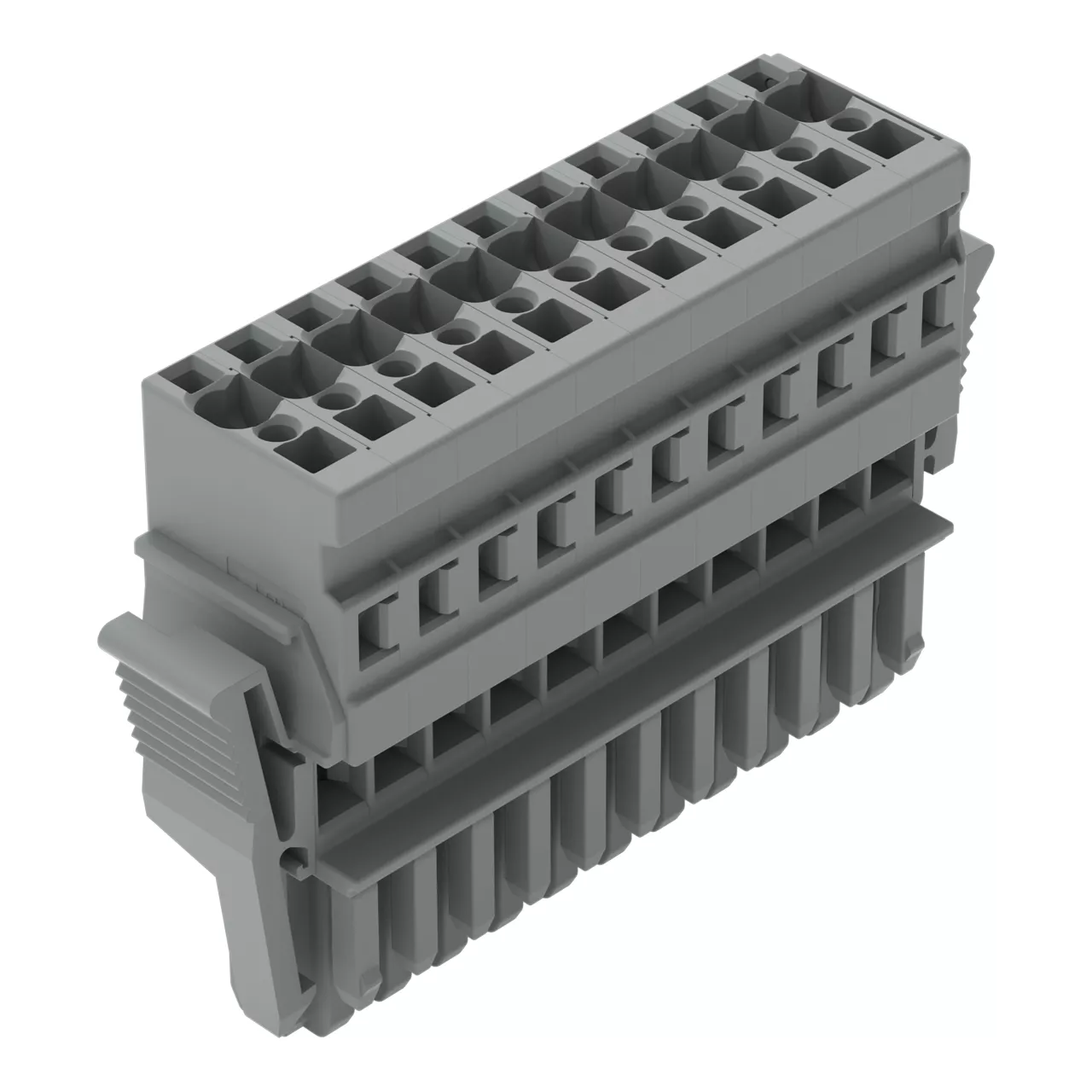 gniazdo 1-przewodowe; CAGE CLAMP®; 4 mm²; raster 5 mm; 11-bieg.; wypust kodujący; boczne zaczepy ryglujące; 4,00 mm²; szary