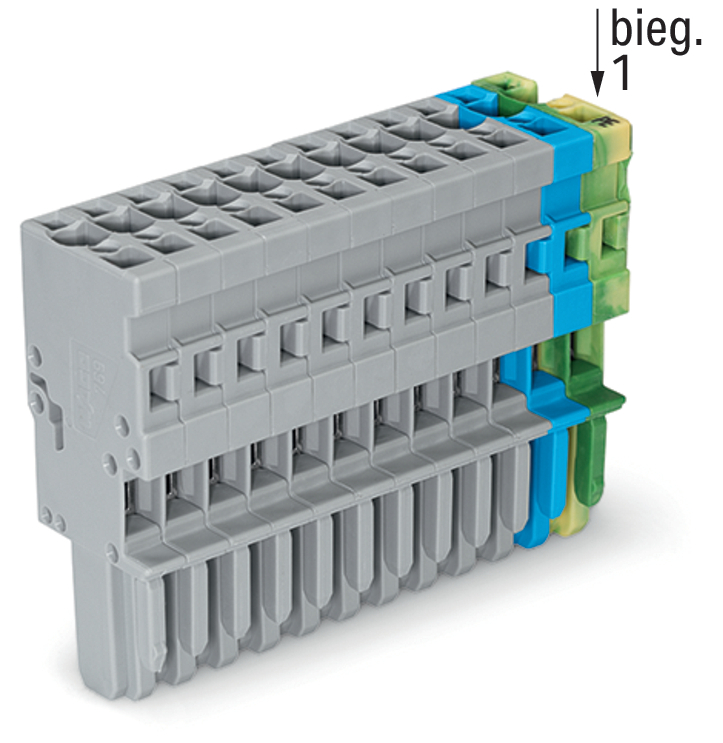 gniazdo 1-przewodowe; CAGE CLAMP®; 4 mm²; raster 5 mm; 12-bieg.; wypust kodujący; 4,00 mm²; żłt-ziel/niebieski/szary